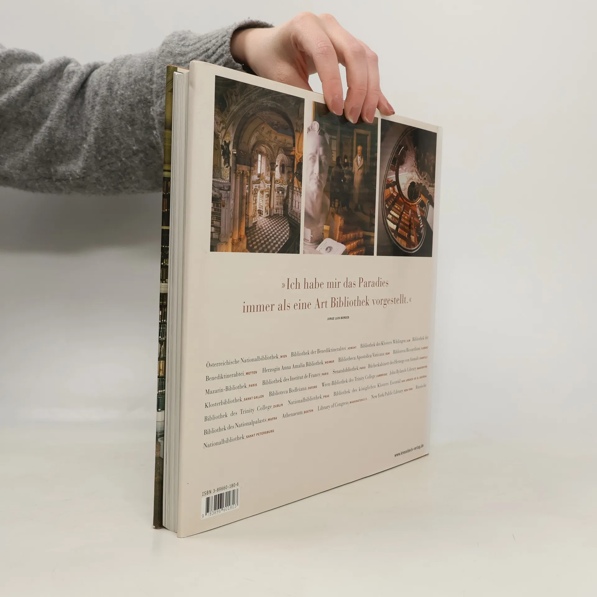 Von den Lesestuben der mittelalterlichen Klöster über die prunkvollen Hofbibliotheken des europäischen Barock bis zu den großen Spezial- und Nationalbibliotheken unserer Tage waren und sind Bibliotheken der Ort, an dem das kulturelle Erbe der Menschheit bewahrt wird. Der Fotograf Guillaume de Laubier hat in einem mehrjährigen Projekt über zwanzig der schönsten Bibliotheken der Welt bereist. Im Spiel mit Licht und Perspektive lässt er die überwältigende Wirkung bedeutender Bibliothekssäle mit ihren Galerien und Regalfluchten, herrlichen Deckenfresken und allegorischen Figuren vor unseren Augen erstehen. Viele ganzseitige Abbildungen und ausklappbare Panoramatafeln vermitteln ein geradezu räumliches Gefühl der historischen Bauten und ihrer kostbaren Bestände. Der Journalist und Kunstkenner Jacques Bosser scheute keine Mühe, die vielfältigen Entstehungsgeschichten der Bibliotheken zusammenzutragen. Er erzählt von ihren architektonischen Besonderheiten und wie sie berühmten Persönlichkeiten dienstbar waren. So erfahren wir unter anderem, dass Goethe als Minister in Weimar Mahngebühren für säumige Ausleiher eingeführt hat und dass wertvolle Buchbestände der österreichischen Benediktinerabtei Admont während des Zweiten Weltkriegs in alle Winde zerstreut wurden. Ergänzt wird der Band durch ein aktuelles Verzeichnis der Adressen, Öffnungszeiten und Sammelgebiete.