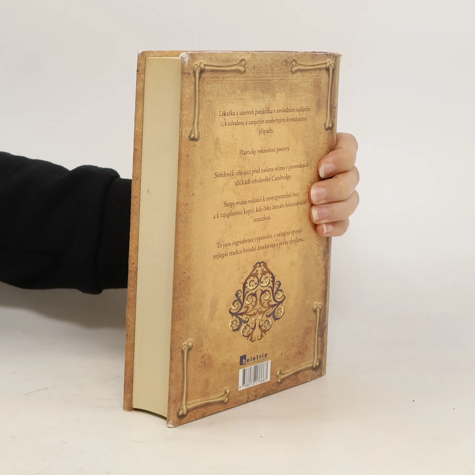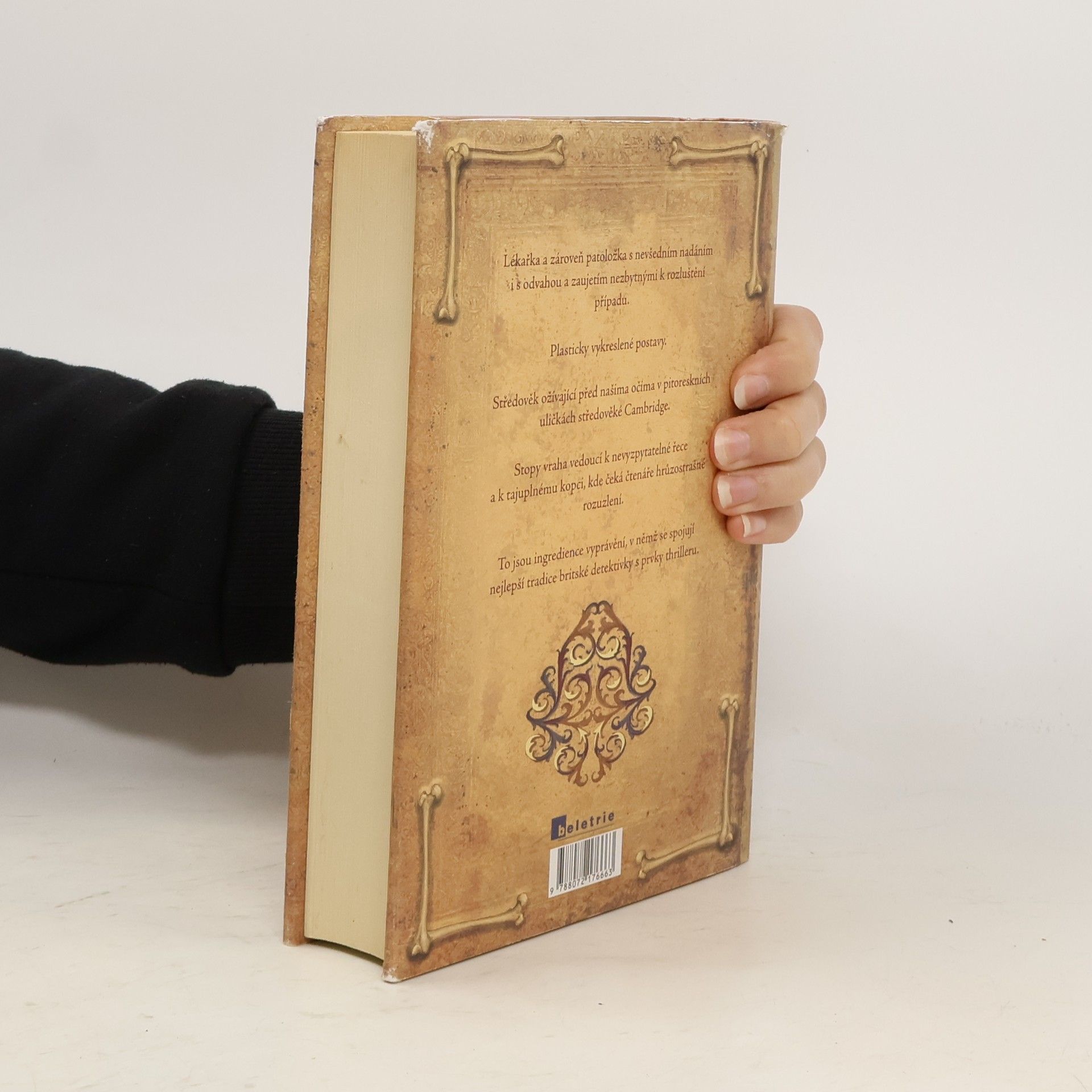 První kniha série Adélie Aguilarová. Na počátku románu, který se odehrává v Cambridgi dvanáctého století, jsou čtyři brutálně zavražděné děti. Všeobecné zděšení, obracející se proti židovské komunitě, nutí anglického krále povolat specialisty až z jižní Itálie. Do Anglie přijíždí pozoruhodná trojice sestávající z vyšetřovatele židovského původu, arabského osobního strážce a především mladé lékařky. Lékařka je "vykladačka smrti", což je raná forma povolání zvaného v současnosti soudní lékař, a zároveň hlavní hrdinka celého příběhu. Příběhu plného napětí, v němž se dramatický spád vyprávění snoubí se znamenitě konstruovanou zápletkou. Příběhu, který nám zároveň připomíná, že střetávání kultur, náboženská zaslepenost a zápas humanity s intolerancí provázejí lidstvo od nepaměti.