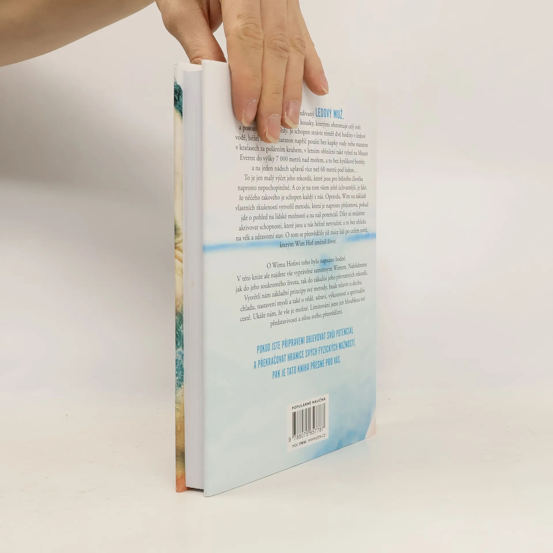 Jediná autorizovaná kniha Wima Hofa představuje převratnou metodu, která nám umožňuje využít náš fyzický i duševní potenciál. Wim Hof, známý jako Ledový muž, ohromuje svět svými neuvěřitelnými výkony, jako je strávení téměř dvou hodin v ledové vodě, běhání maratonů bez vody a výstupy na Mount Everest bez kyslíku. Tyto rekordy mohou vypadat nepochopitelně, ale Hof tvrdí, že podobných schopností může dosáhnout každý z nás. Na základě svých zkušeností vytvořil metodu, která mění pohled na lidské možnosti a aktivuje nevyužité schopnosti, bez ohledu na věk či zdravotní stav. Tisíce lidí po celém světě již pocítily pozitivní změny ve svém životě díky této metodě. Kniha nabízí osobní pohled na Hofův život a zákulisí jeho rekordů. Vysvětluje základní principy jeho metody, včetně technik dýchání, práce s chladem, nastavení mysli a souvislostí se zdravím a spirituálním rozvojem. Hof ukazuje, že naše limity jsou určeny pouze hloubkou naší představivosti a silou přesvědčení. Pokud jste připraveni objevovat svůj potenciál a překonávat fyzické hranice, tato kniha je pro vás. „Tato metoda je jednoduchá, přístupná a vědecky podložená. Může ji praktikovat kdokoli, bez dogmat, pouze s přijetím a svobodou.“