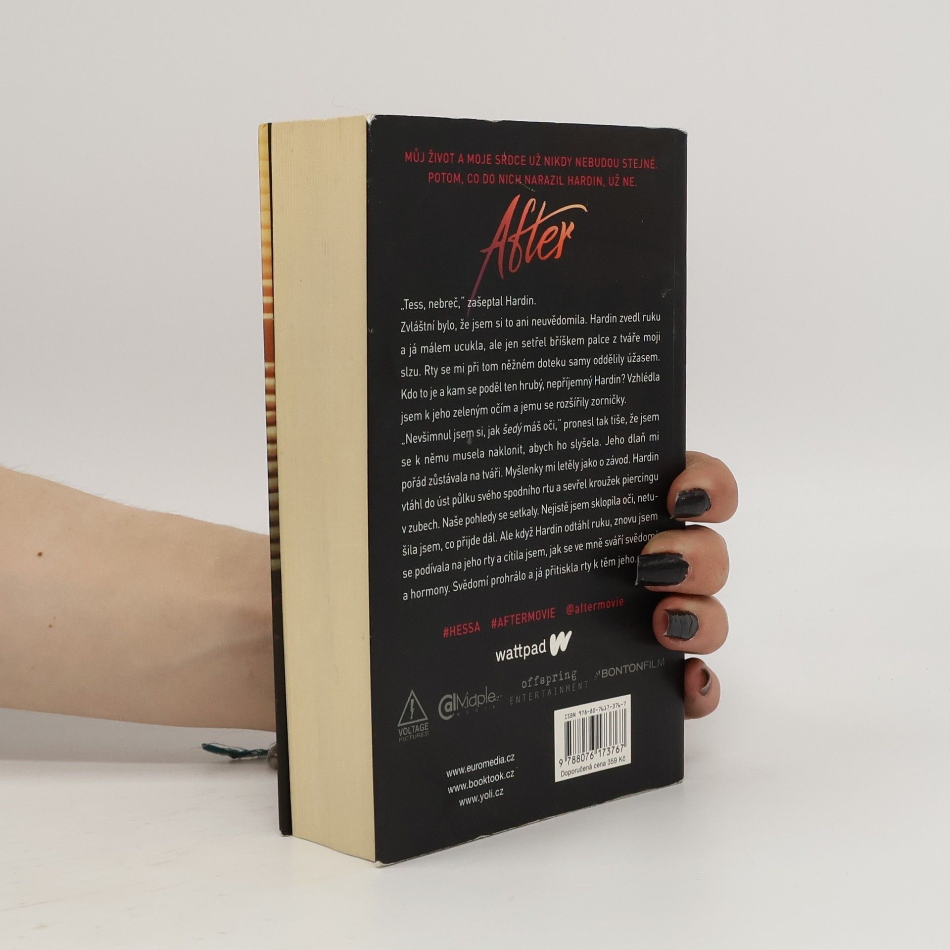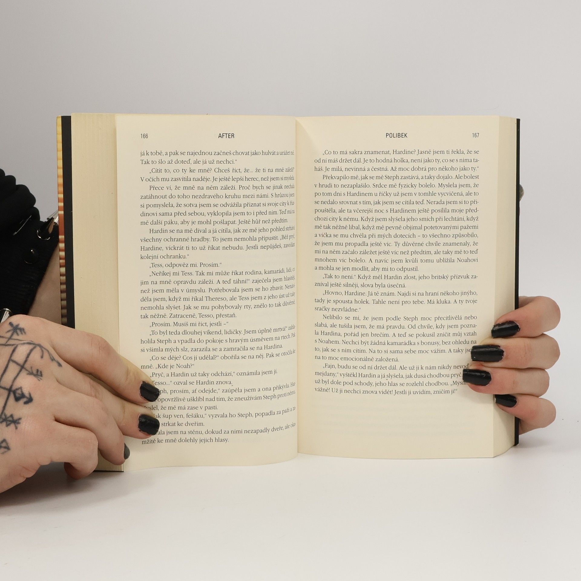 2. Vydání …můj život a moje srdce už nikdy nebudou stejné. Potom, co do nich narazil Hardin, už ne. Tessa má všechno – žije v láskyplném prostředí s chápající matkou a má kluka svých snů, laskavého, milého, kterého jí závidí všechny kamarádky. Lepšího už si ani nemohla přát. Tessin pohodový život ale v okamžiku změní jediné setkání. Hardin je pořádně drzý kluk, s nepřeslechnutelným, nafoukaným britským akcentem, sexy rozcuchem, tetováním a piercingem ve rtu. Tessa si nemůže pomoct – Hardin je zkrátka jiný než ostatní kluci, které poznala… A to po všech stránkách – dovede být i pěkně krutý. Neměla by ho spíš nenávidět? Neměla by jím Tessa pohrdat? Jak to, že se od něj nemůže odpoutat? Nedokáže to – i přes všechny jeho chyby a prohřešky. Intenzivní vášnivou blízkost střídají neustálá Hardinova zmizení a výbuchy vzteku. Může takhle vůbec vypadat láska? Tessa sama nevěří, že by takový vztah mohl fungovat. Ale… jde odolat jeho polibku?