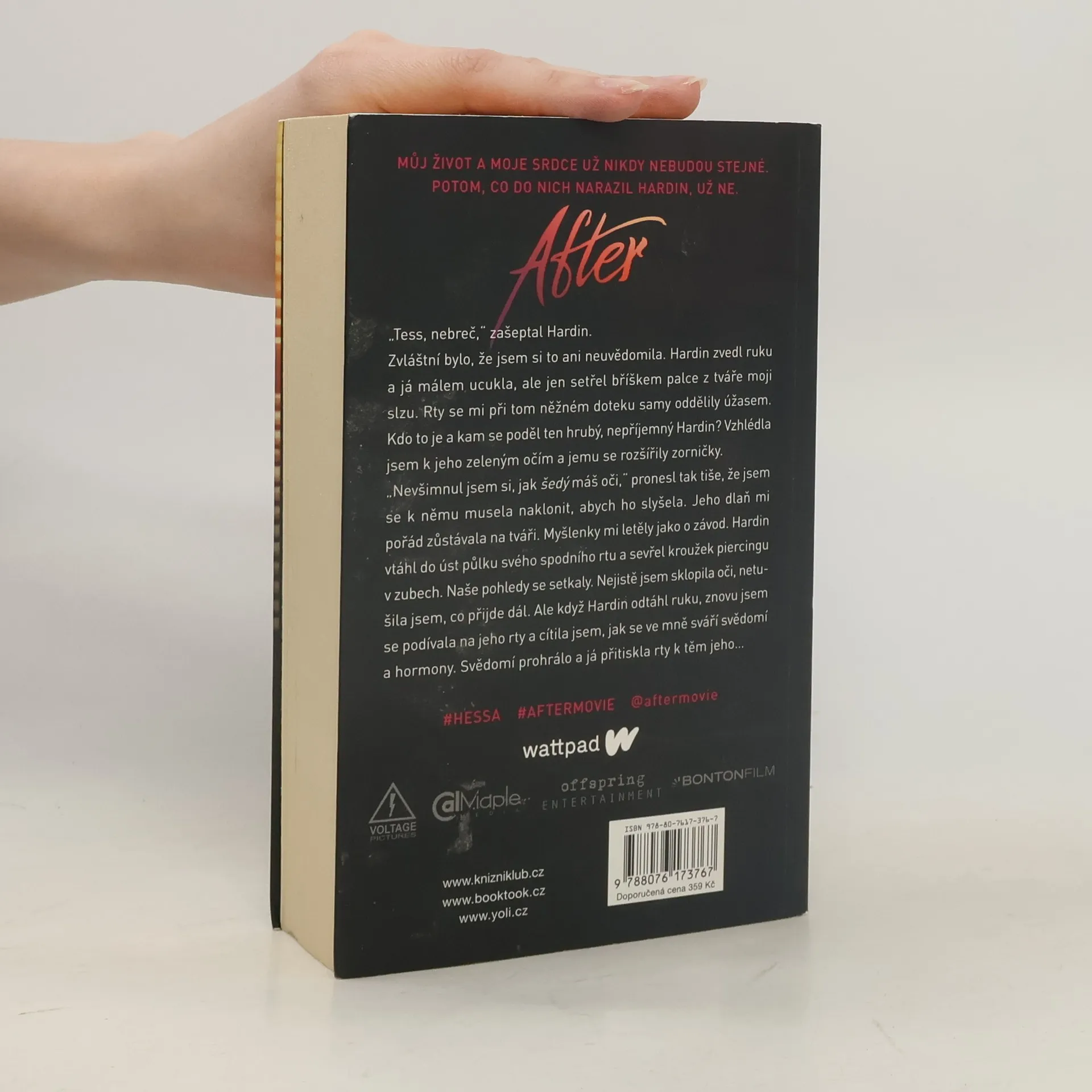 2. Vydání …můj život a moje srdce už nikdy nebudou stejné. Potom, co do nich narazil Hardin, už ne. Tessa má všechno – žije v láskyplném prostředí s chápající matkou a má kluka svých snů, laskavého, milého, kterého jí závidí všechny kamarádky. Lepšího už si ani nemohla přát. Tessin pohodový život ale v okamžiku změní jediné setkání. Hardin je pořádně drzý kluk, s nepřeslechnutelným, nafoukaným britským akcentem, sexy rozcuchem, tetováním a piercingem ve rtu. Tessa si nemůže pomoct – Hardin je zkrátka jiný než ostatní kluci, které poznala… A to po všech stránkách – dovede být i pěkně krutý. Neměla by ho spíš nenávidět? Neměla by jím Tessa pohrdat? Jak to, že se od něj nemůže odpoutat? Nedokáže to – i přes všechny jeho chyby a prohřešky. Intenzivní vášnivou blízkost střídají neustálá Hardinova zmizení a výbuchy vzteku. Může takhle vůbec vypadat láska? Tessa sama nevěří, že by takový vztah mohl fungovat. Ale… jde odolat jeho polibku?
