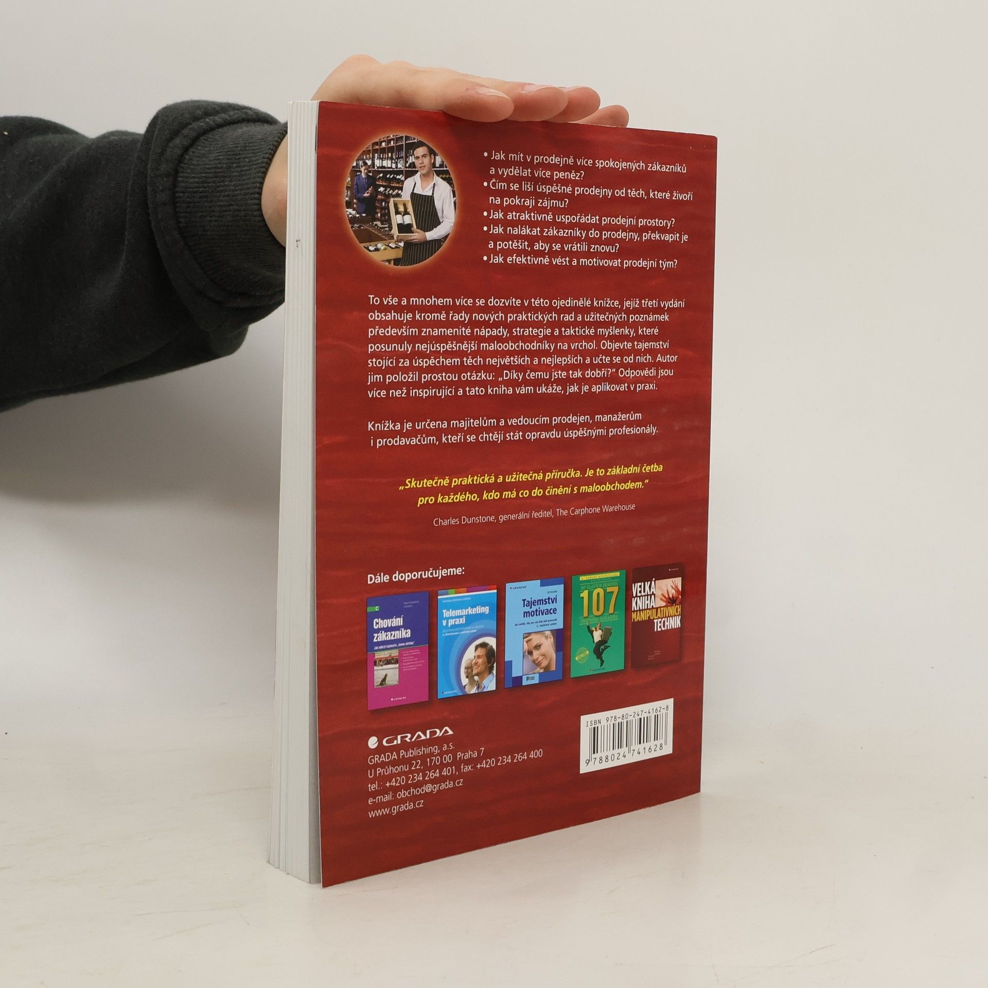 Jak mít v prodejně více spokojených zákazníků a vydělat více peněz? Čím se liší úspěšné prodejny od těch, které živoří na pokraji zájmu? Jak atraktivně uspořádat prodejní prostory? Jak nalákat zákazníky do prodejny, překvapit je a potěšit, aby se vrátili znovu? Jak efektivně vést a motivovat prodejní tým? To vše a mnohem více se dozvíte v této ojedinělé knížce, jejíž třetí vydání obsahuje kromě řady nových praktických rad a užitečných poznámek především znamenité nápady, strategie a taktické myšlenky, které posunuly nejúspěšnější maloobchodníky na vrchol. Objevte tajemství stojící za úspěchem těch největších a nejlepších a učte se od nich. Autor jim položil prostou otázku: "Díky čemu jste tak dobří??" Odpovědi jsou více než inspirující a tato kniha vám ukáže, jak je aplikovat v praxi. Knížka je určena majitelům a vedoucím prodejen, manažerům i prodavačům, kteří se chtějí stát opravdu úspěšnými profesionály.
