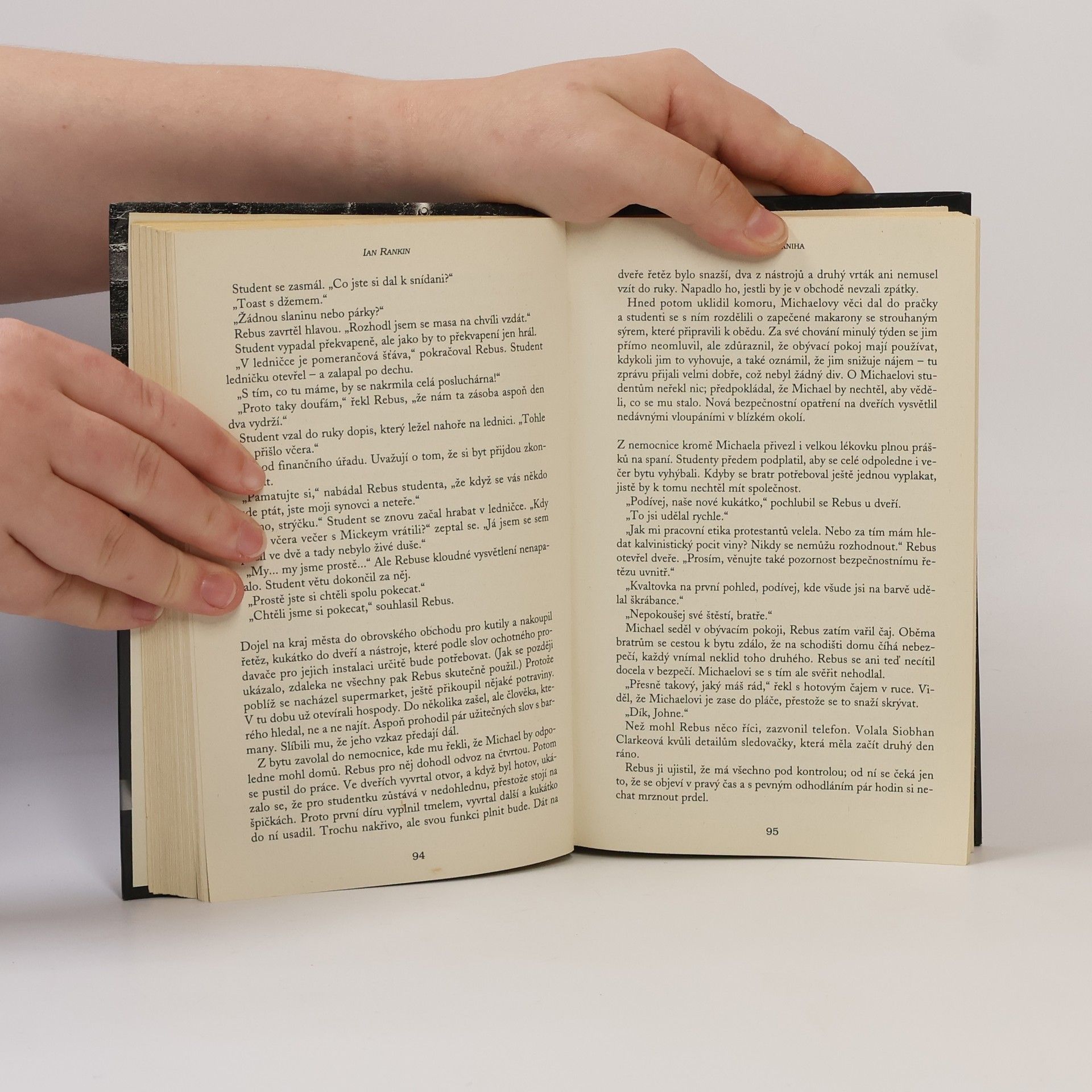 Pátá kniha série Inspektor Rebus. Všechno by bylo jinak, kdyby John Rebus nezašel do svého oblíbeného masážního salonu a v čekárně tam nelistoval v bibli právě v okamžiku, když... Tak začíná další z edinburských dobrodružství detektiva inspektora Rebuse. A pak už jedna pohroma stíhá druhou: stačí pár dnů a smůlou pronásledovaný Rebus ztratí lásku milované ženy, po letech se setká s bratrem, jehož nijak nepostrádal, znovu stane tváří v tvář nebezpečnému přízraku z minulosti a v jednom edinburském řeznictví zborceném krví se mu přímo před očima odehraje černá komedie, kterou zinscenoval sám život. „Zkrátka jeden z těch prokletých týdnů," máme-li citovat samotného Rebuse. Když potom někdo brutálně přepadne jeho kolegu, je Rebus zatažen do případu, který ho stále vrací k záhadě vyhořelého hotelu, kde po noci hrůzy našli mrtvolu zavražděného muže, jehož totožnost i po letech zůstává záhadou. Přestože Rebuse pronásledují přízraky z vlastní minulosti a Černá kniha s kolegovými zápisky mu nedá spát, musí vzít rozum do hrsti a pokusit se tuto složitou skládačku vyřešit. Situace se však natolik zkomplikuje, že je ohrožena nejen jeho kariéra, ale i život. V sebeobraně mu pak nezbývá než sáhnout k prostředkům, na které by jinak ani nepomyslel, a zajde při tom tak daleko za hranice zákona, že snad nebude cesty zpátky...