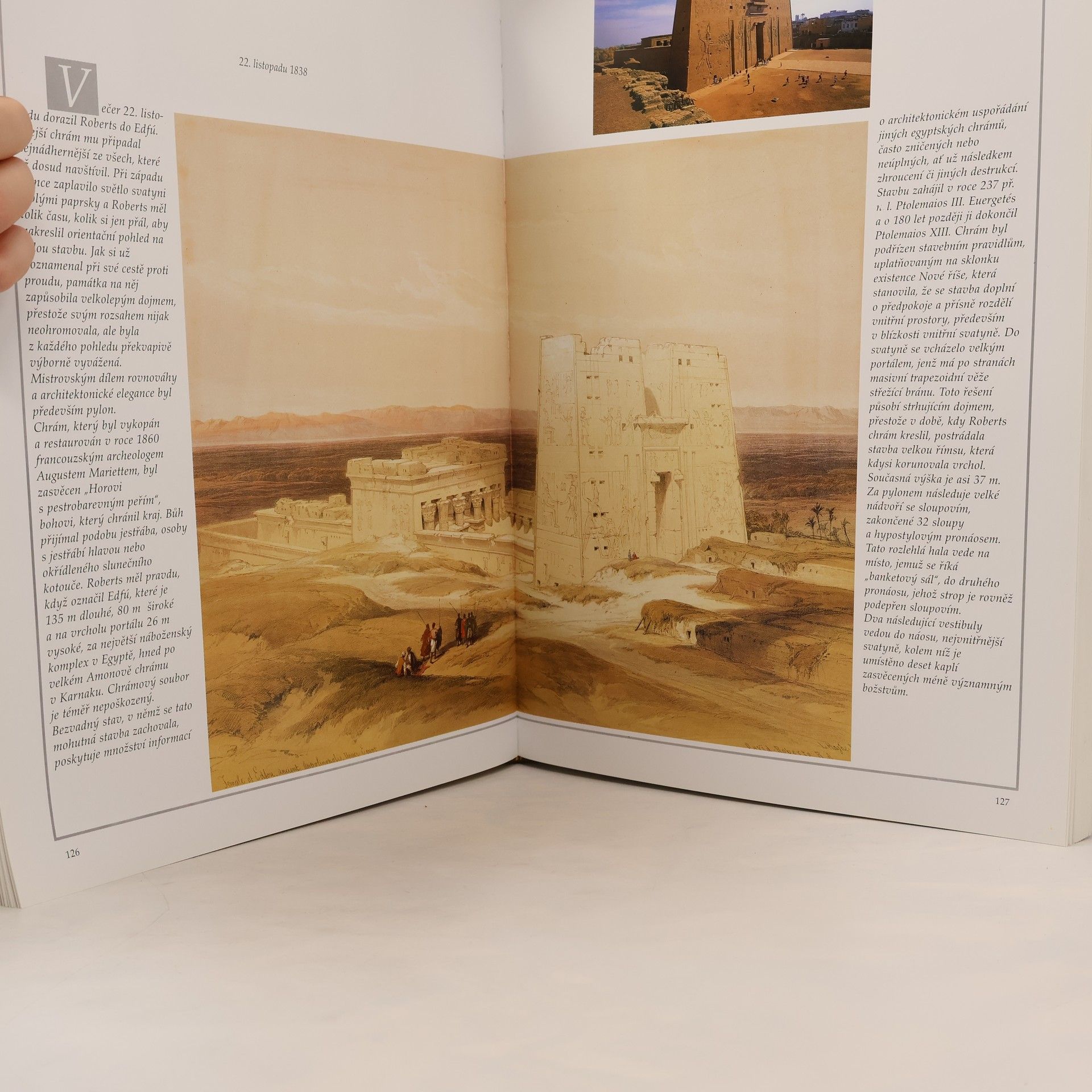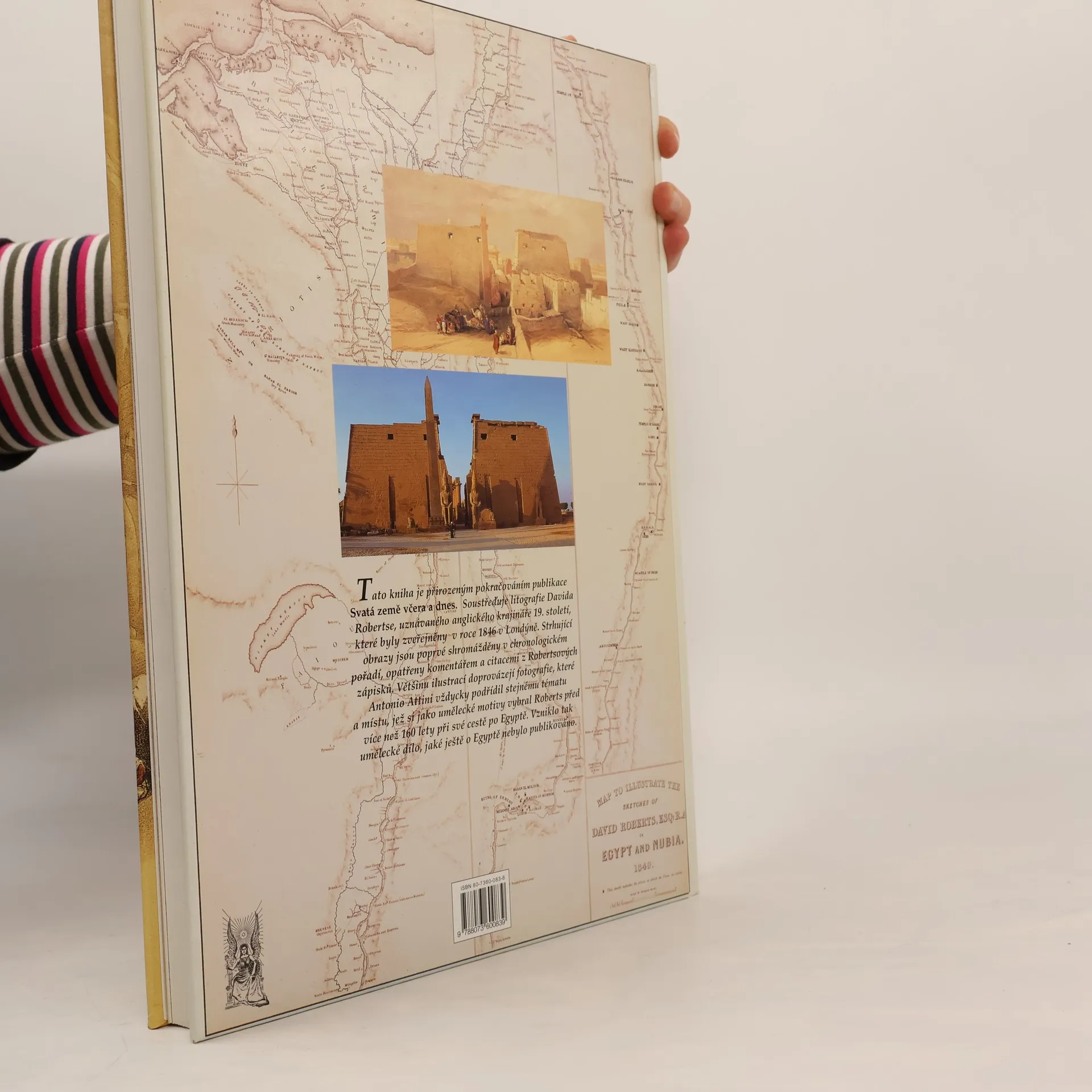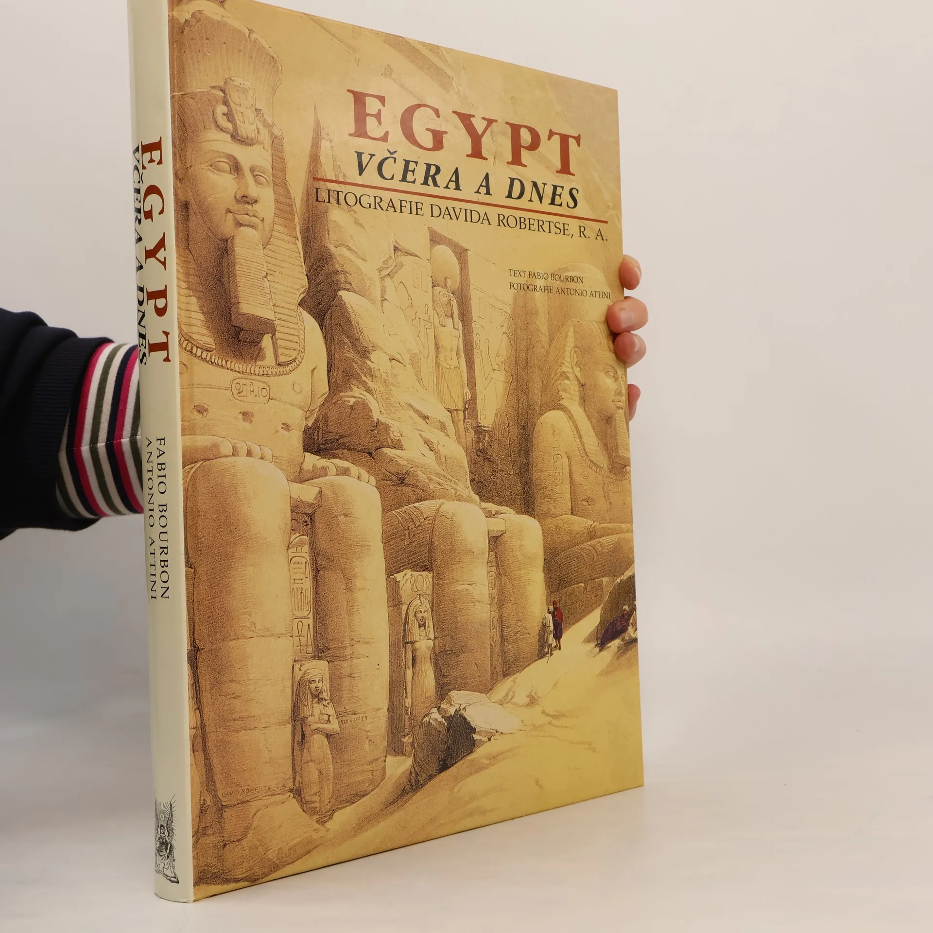 LITOGRAFIE DAVIDA ROBERTSE, R. A. Tato kniha je přirozeným pokračováním publikace Svatá země včera a dnes. Soustřeďuje litografie Davida Robertse, uznávaného anglického krajináře 19. století, které byly zveřejněny v roce 1846 v Londýně. strhující obrazy jsou poprvé shromážděny v chronologickém pořadí, opatřeny komentářem a citacemi Robertsových zápisků. Většinu ilustrací doprovázejí fotografie, které Antonio Attini vždycky podřídil stejnému tématu a místu, jež si jako umělecké motivy vybral Roberts před více než 160 lety při své cestě po Egyptě. Vzniklo tak umělecké dílo, jaké ještě o Egyptě nebylo publikováno.
