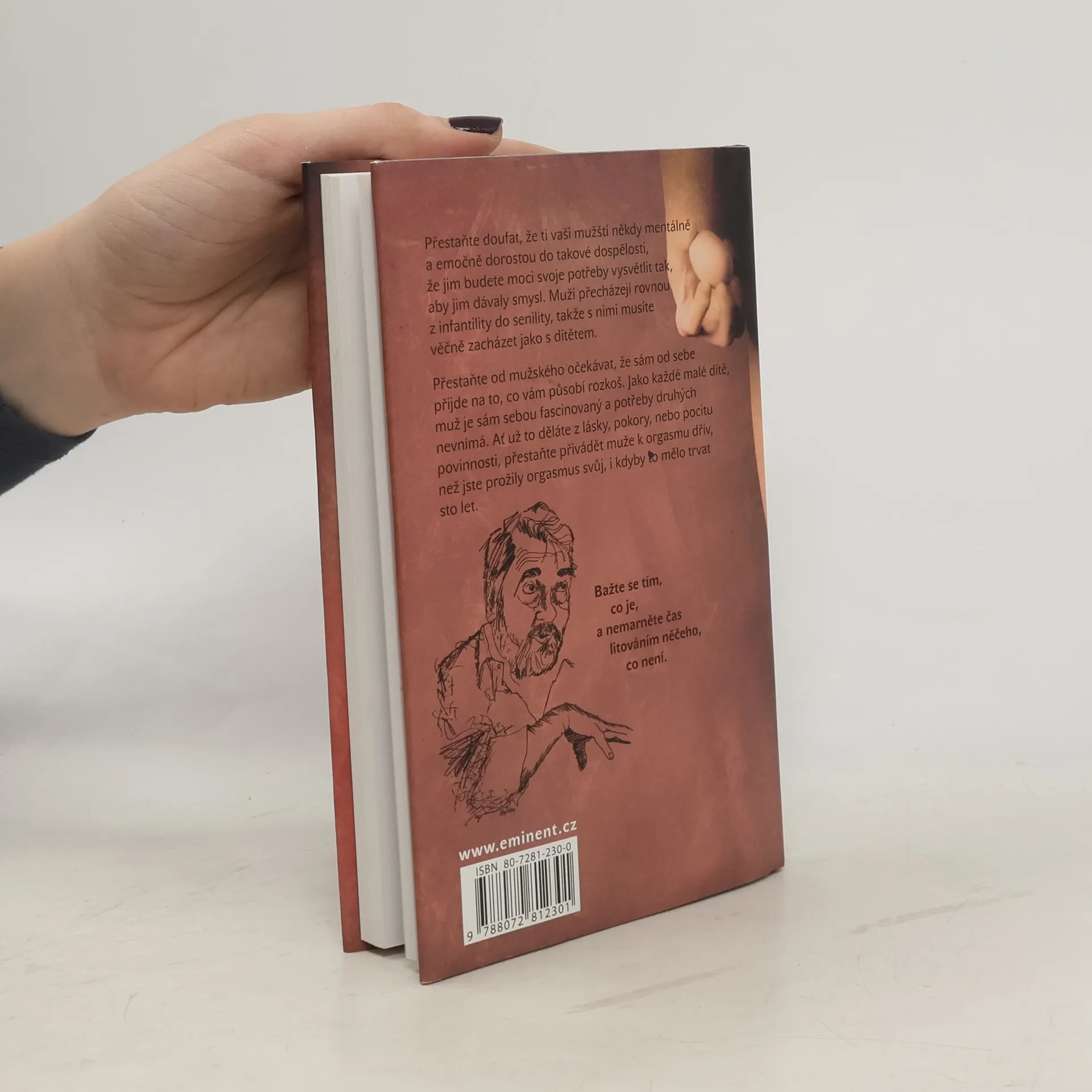 Přestaňte doufat, že ti vaši mužští někdy mentálně a emočně dorostou do takové dospělosti, že jim budete moci svoje potřeby vysvětlit tak, aby jim dávaly smysl. Muži přecházejí rovnou z infantility do senility, takže s nimi musíte věčně zacházet jako s dítětem. Přestaňte od mužského očekávat, že sám od sebe přijde na to, co vám působí rozkoš. Jako každé malé dítě, muž je sám sebou fascinovaný a potřeby druhých nevnímá. Ať už to děláte z lásky, pokory, nebo pocitu povinnosti, přestaňte přivádět muže k orgasmu dřív, než jste prožily orgasmus svůj, i kdyby to mělo trvat sto let. Skvělá a poučná kniha s podtitulem "aneb jak blaho alespoň předstírat" volně navazuje na autorův bestseller Tao sexu a je novým příspěvkem k věčnému tématu vztahů žen a mužů.... celý text