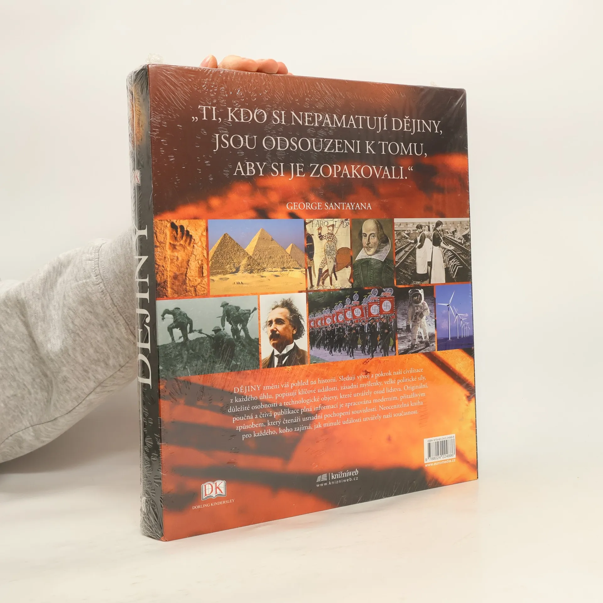 V řadě velkých encyklopedických publikací Zvíře, Člověk, Země atd. představujeme velkoryse pojatý svazek věnovaný dějinám lidstva, od prapočátku po současnost. Texty fundovaných odborníků s bohatým obrazovým doprovodem provázejí čtenáře dlouhým příběhem světových dějin a seznamují ho s významnými událostmi, politickými změnami, válečnými střety atd. Tato kniha však není jen o událostech, které předurčily podobu moderního světa a utvořily identitu nás samotných. Nemenší pozornost je věnována také světu idejí. Jsou zde zkoumány takové fenomény, jako je demokracie, myšlenka evoluce či globalizace. Naleznete zde také biografické medailonky nejvlivnějších osob světových dějin od faraona Ramesse II. až po Martina Luthera Kinga. A na své si přijde i milovník vědy a techniky. Setká se zde s klíčovými inovacemi, vynálezy, vědeckými objevy a teoriemi, které ovlivnily lidské působení na Zemi; od prvního užívání ohně a zpracování kovů až po internet a od DNA až po globální oteplování. Díky působivým fotografiím, mapkám, časovým osám, křížovým odkazům a dalším pomůckám se v knize čtenář snadno zorientuje a Dějiny pro něj budou nejen cennou příručkou, ale i výtvarně působivou obrazovou publikací.