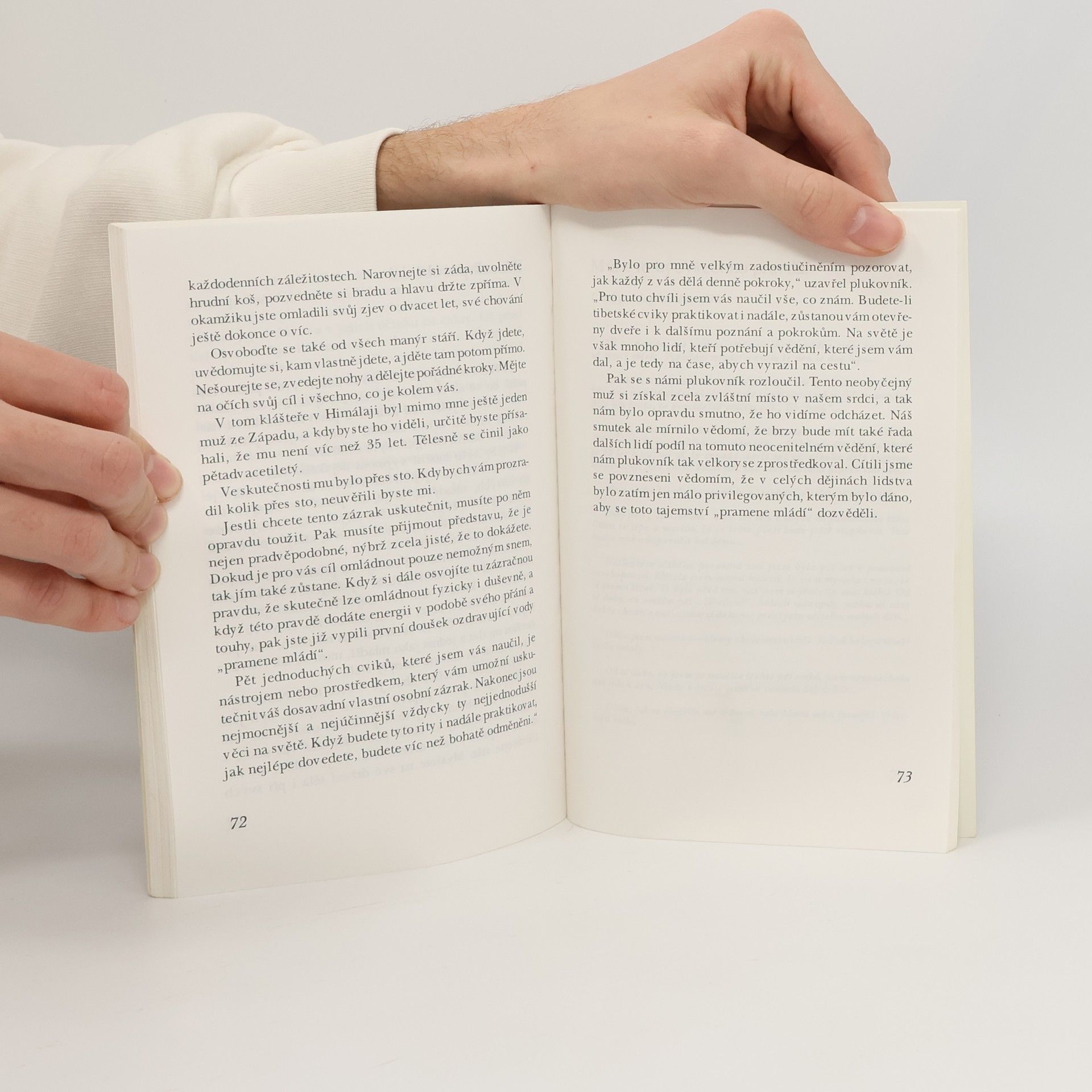 Staré tajemství himálajských údolí působí zázraky. Tato kniha je nedocenitelným zdrojem informací: pěti prastarých tibetských ritů, které jsou klíčem k udržení mládí, zdraví a vitality. Popisované rity využívají univerzální energii k tomu, aby přivedly tělo opět do rovnováhy. Tato činnost má blahodárné účinky tím, že blokuje „hormon smrti“ a normalizuje tvorbu hormonů žláz s vnitřní sekrecí. Když je toho dosaženo, mohou se buňky v těle opět obnovovat a prospívat, jak to činily, když jsme byli mladí. Můžeme pak vidět a cítit, jak „mládneme“.