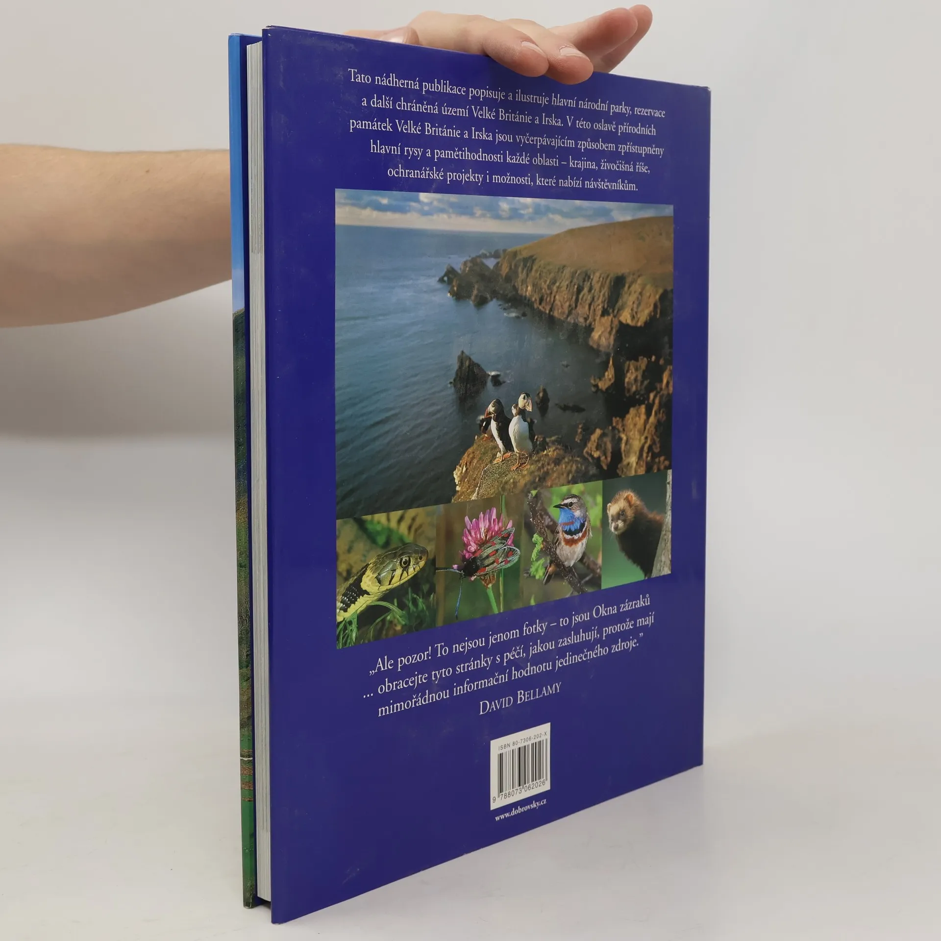 Kniha Národní parky a další přírodní památky Británie a Irska zkoumá největší národní parky, rezervace a další chráněné oblasti v Anglii, Walesu, Skotsku a Irsku. Čtenáře zavádí na nesmírně zajímavou cestu po rozličných typech krajiny a přírodních památek. Na četných toulkách přírodou – od písečných pláží Devonu na jihu až po rozeklané skotské hory Cairngorms na severu země – je tu odhalováno bohatství zdejší fauny a flóry. Mimořádně fundovaný text a přes 250 specielně pořízených fotografií oživuje různé typy krajiny, zvířeny i dějiny každé zobrazené oblasti. Jednotlivé barevné mapy ukazují hlavní rysy určité oblasti, zatímco informační rámečky poskytují údaje o tom, která místa je nejlépe navštívit, o jejich přístupnosti, ubytování a o tom, čemu se tam lze věnovat – například pěší turistice, horolezectví, pozorování ptáků a potápění.