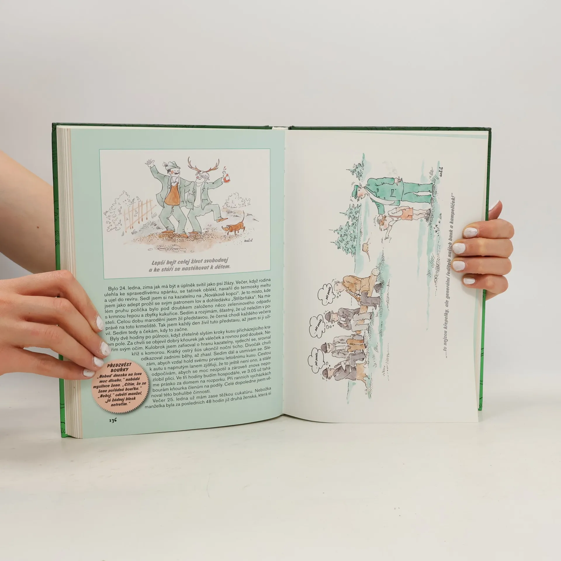 Tak jsme si naposled popovídali se sv. Hubertem a on nám vnukl myšlenku položit před vás knihu plnou opravdového kresleného i psaného mysliveckého humoru v příbězích zachycujících myslivost, tak jak ji známe z vyprávění našich otců a dědů, zasazenou do období od konce sedmdesátých let minulého století do počátku privatizace lesního hospodářství. Nesnaží se tato dvě období hodnotit ani míchat dohromady, neboť se to s hruškami a jablky nedělá, jak to prý říkávala už autorova babička. Je také pravdou, že čtenáři, kteří milují bónmatáky leadrů politických stran, zprávy o dvacátém potratu popové hvězdy či obdivují anabolické hrdiny s raketou středního doletu v poklopcích jejich rozumu, si s námi po přečtení této knížky na kančím gulášku s pivínkem dle autorova receptu asi nepochutnají Tož dejte si víc pod hlavu, stopečku destilovaných švestiček a rozsviťte lampičku na nočním stolku. Dobrou zábavu, léčivý úsměv a nezapomeňte otočit další list.