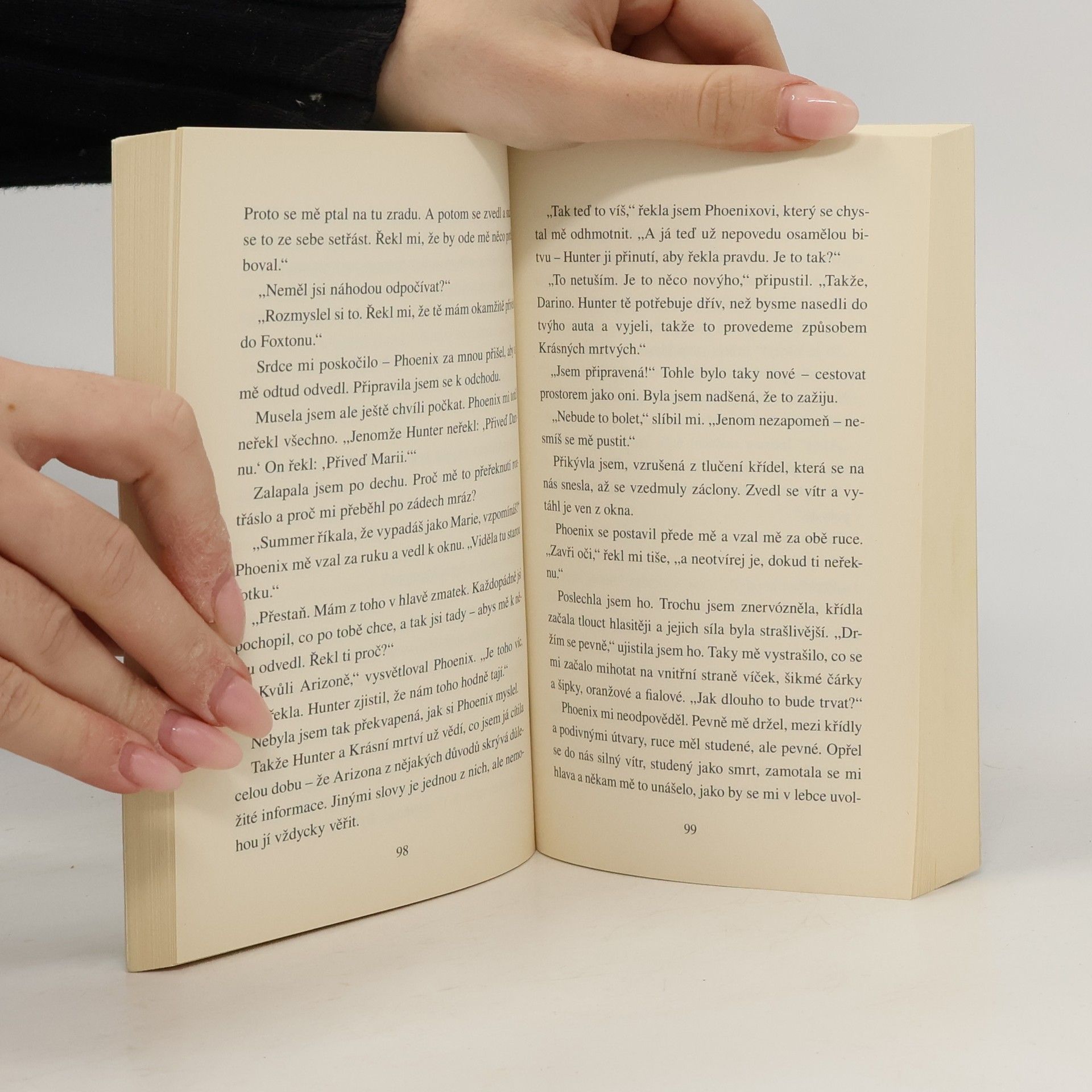 Nejsou živí. Nejsou mrtví. Něco mezi tím. V průběhu jednoho roku zemřou za podivných okolností čtyři mladí, krásní lidé, studenti ellertonské střední školy. Jonas, Arizona, Summer a - Phoenix. Ta poslední smrt zasáhne Darinu nejvíc. Byl to její kluk, její veliká, největší láska… Je její setkání s Krásnými mrtvými skutečné? Co znamenají ta andělská křídla, která vidí, slyší a která nakonec sama dostává? Jonas zemřel jako první, zabil se na motorce. Ale je tolik nezodpovězených otázek… Odhalí Darina včas temná tajemství tajemství, aby tak vykoupila duše Krásných mrtvých?