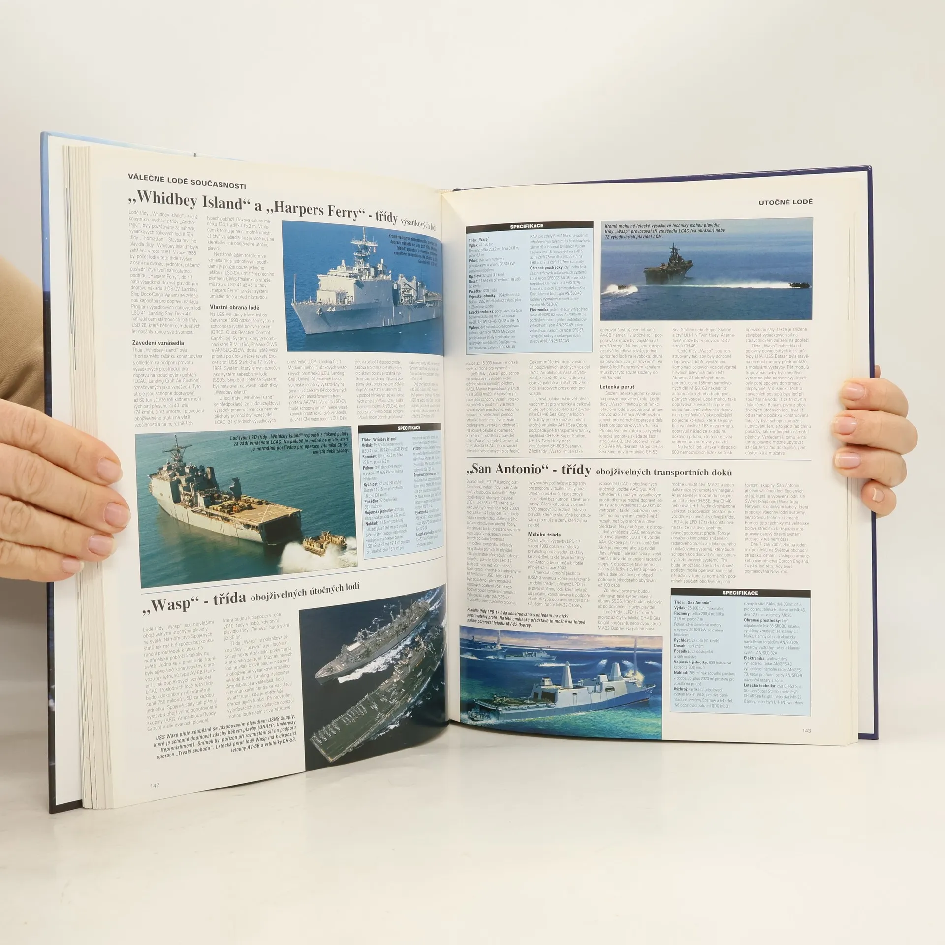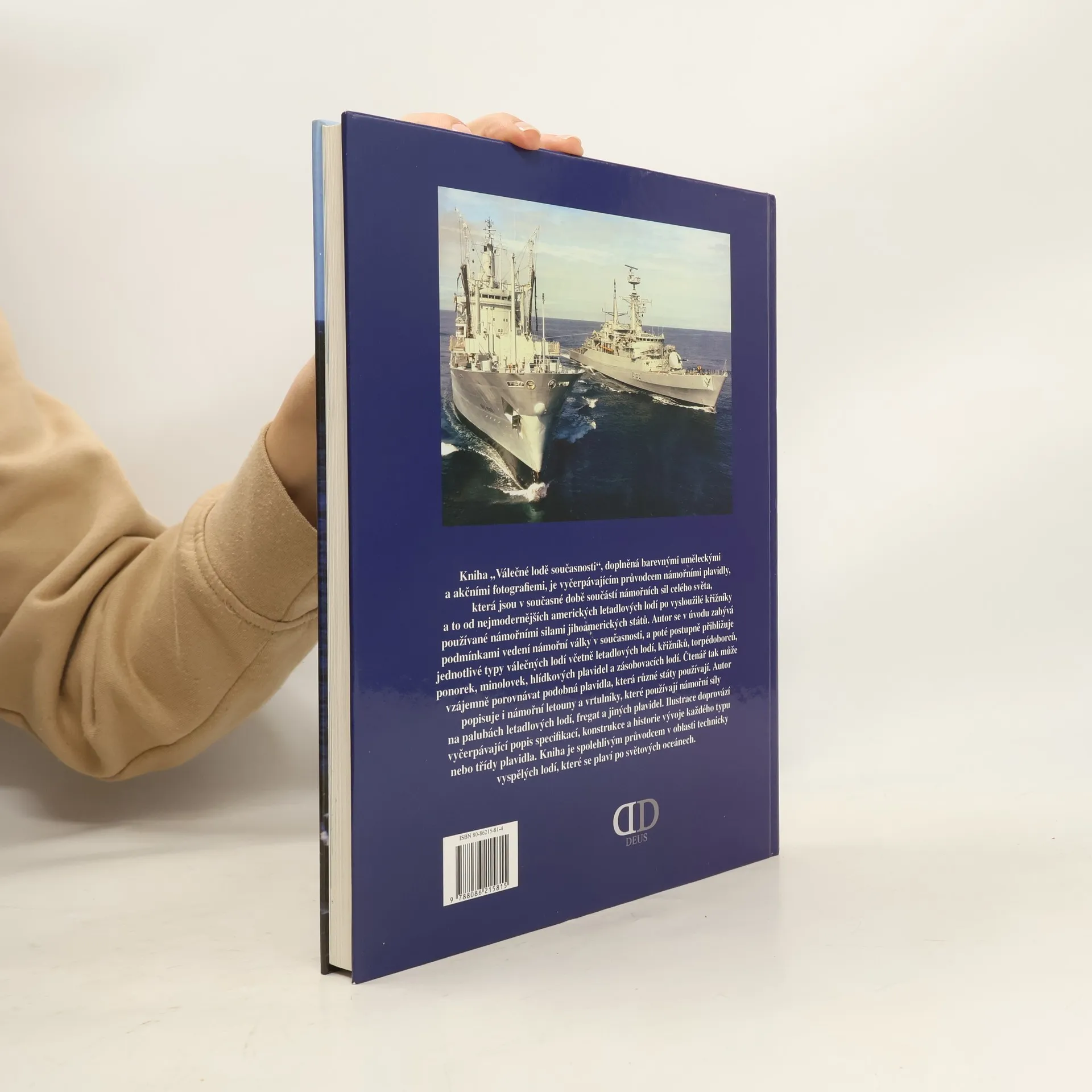 Kniha Válečné lodě současnosti, doplněná barevnými uměleckými a akčními fotografiemi, je vyčerpávajícím průvodcem námořními plavidly, která jsou v současné době součástí námořních sil celého světa, a to od nejmodernějších amerických letadlových lodí po vysloužilé křižníky používané námořními silami jihoamerických států. Autor se v úvodu zabývá podmínkami vedení námořní války v současnosti a poté postupně přibližuje jednotlivé typy válečných lodí včetně letadlových lodí, křižníků, torpédoborců, ponorek, minolovek, hláskovacích plavidel a zásobovacích lodí.