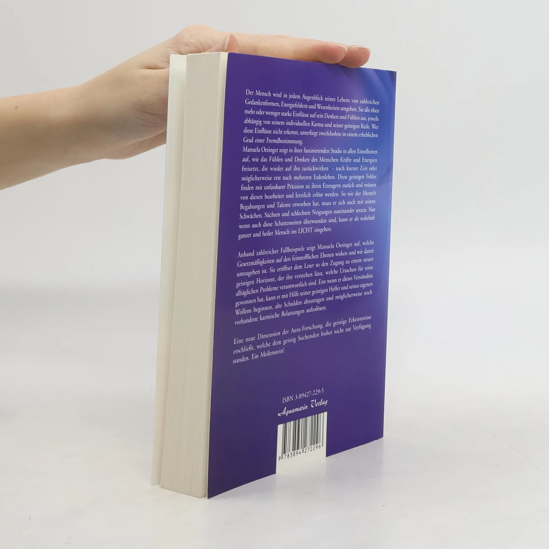 Manuela Oetinger zeigt in ihrer faszinierenden Studie in allen Einzelheiten auf, wie das Fühlen und Denken des Menschen Kräfte und Energien freisetzt, die wieder auf ihn zu rückwirken nach kurzer Zeit oder möglicherwei se erst nach mehreren Erdenleben. Diese geistigen Felder finden mit unfassbarer Präzision zu ihren Erzeugern zu rück und müssen von diesen bearbeitet und letztlich erlöst werden. So wie der Mensch Begabungen und Talente erworben hat, muss er sich auch mit seinen Schwächen, Süchten und schlechten Neigungen auseinandersetzen. Anhand zahlreicher Fallbeispiele zeigt Manuela Oetinger auf, welche Gesetzmäßigkeiten auf den feinstofflichen Ebenen wirken und wie damit umzugehen ist.