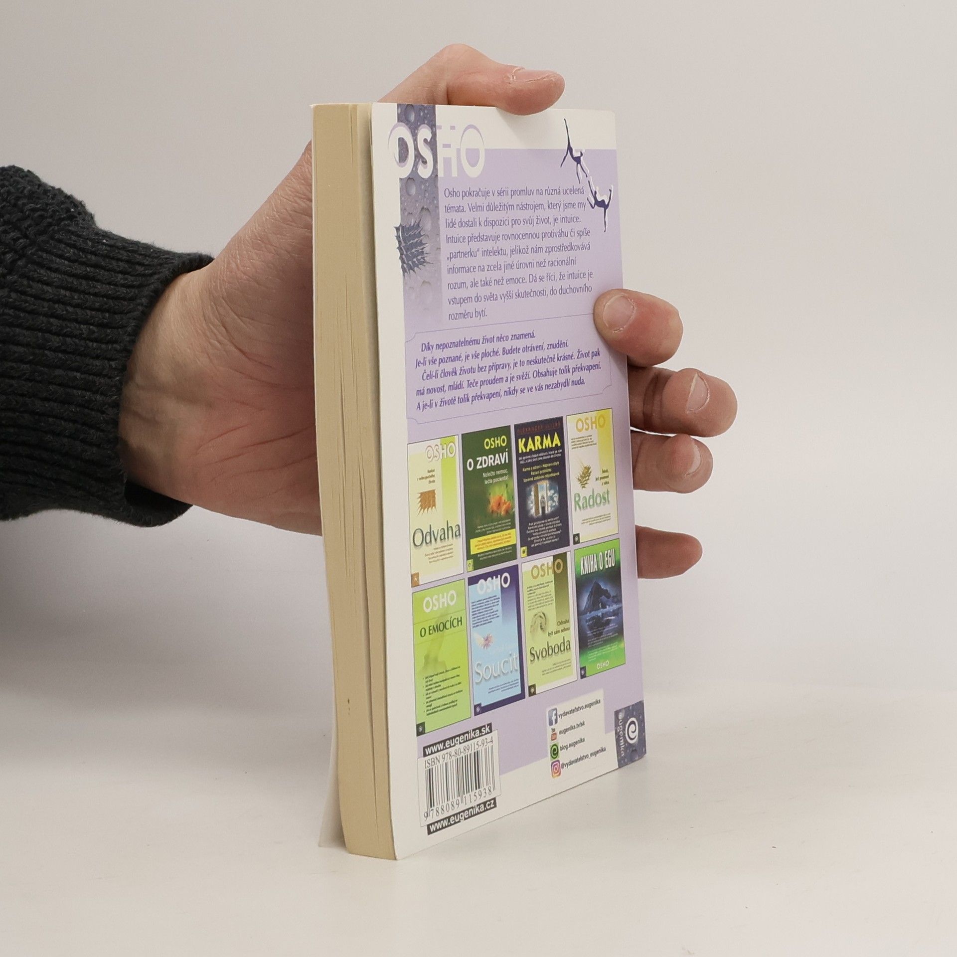 Osho v této knize pokračuje v sérii promluv na různá ucelená témata. Velmi důležitým nástrojem, který jsme my lidé dostali do vínku, je intuice. Intuice představuje „partnerku“ intelektu, protože nám zprostředkovává informace na zcela jiné úrovni než rozum i emoce. Dá se říci, že intuice je vstupem do světa vyšší skutečnosti, do duchovního rozměru bytí...... celý text