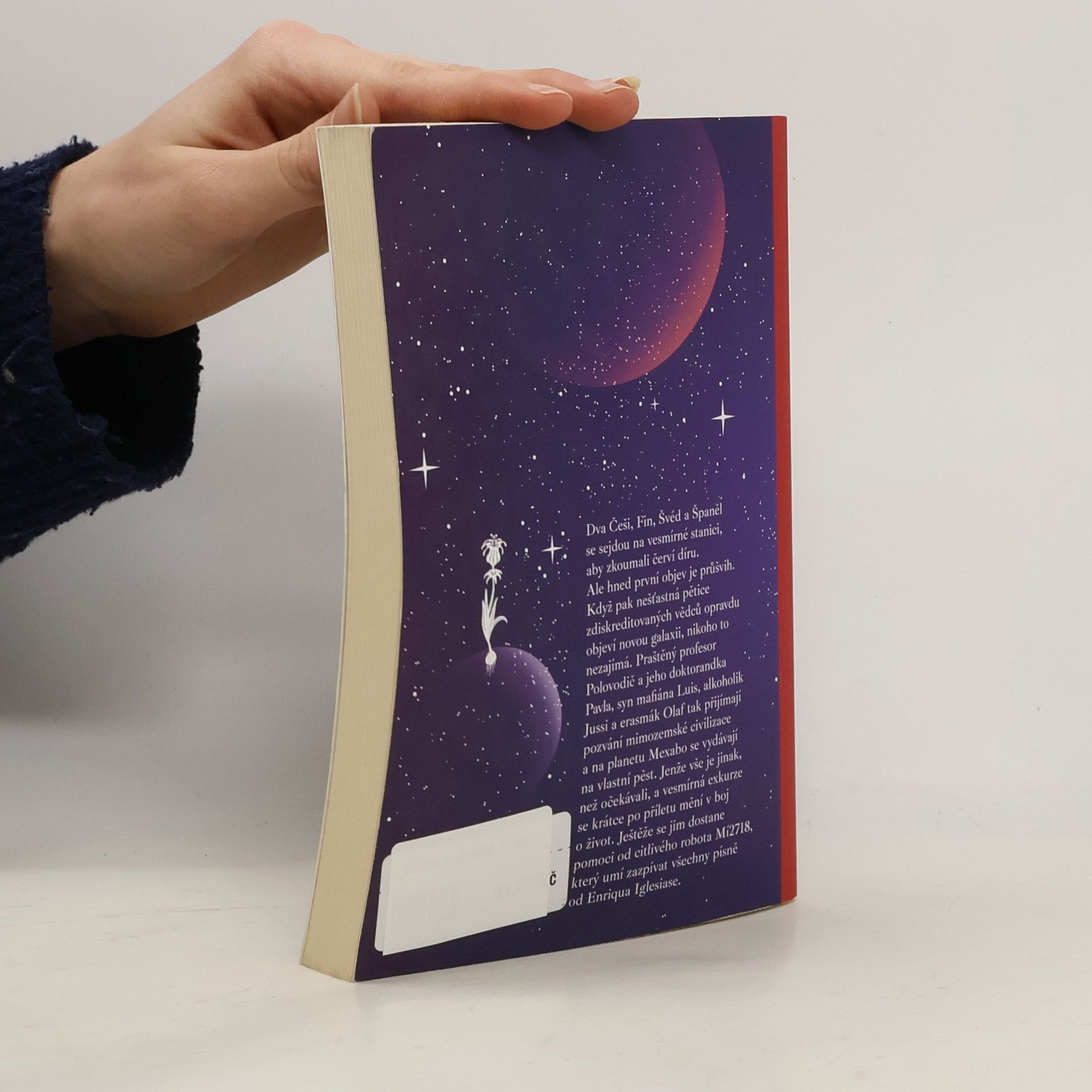 Humorné sci-fi, ve kterém se partička zdiskreditovaných vědců náhodou dostane do daleké galaxie. Nečeká je však žádná pohodová návštěva, ale pořádné drama. Dva Češi, Fin, Švéd a Španěl se sejdou na vesmírné stanici, aby zkoumali červí díru. Ale hned první objev je průšvih. Když pak nešťastná pětice zdiskreditovaných vědců opravdu objeví novou galaxii, nikoho to nezajímá. Praštěný profesor Polovodič a jeho doktorandka Pavla, syn mafiána Luis, alkoholik Jussi a erasmák Olaf tak přijímají pozvání mimozemské civilizace a na planetu Mexabo se vydávají na vlastní pěst. Jenže vše je jinak, než očekávali, a vesmírná exkurze se krátce po příletu mění v boj o život. Ještěže se jim dostane pomoci od citlivého robota Mí2718, který umí zazpívat všechny písně od Enriqua Iglesiase.