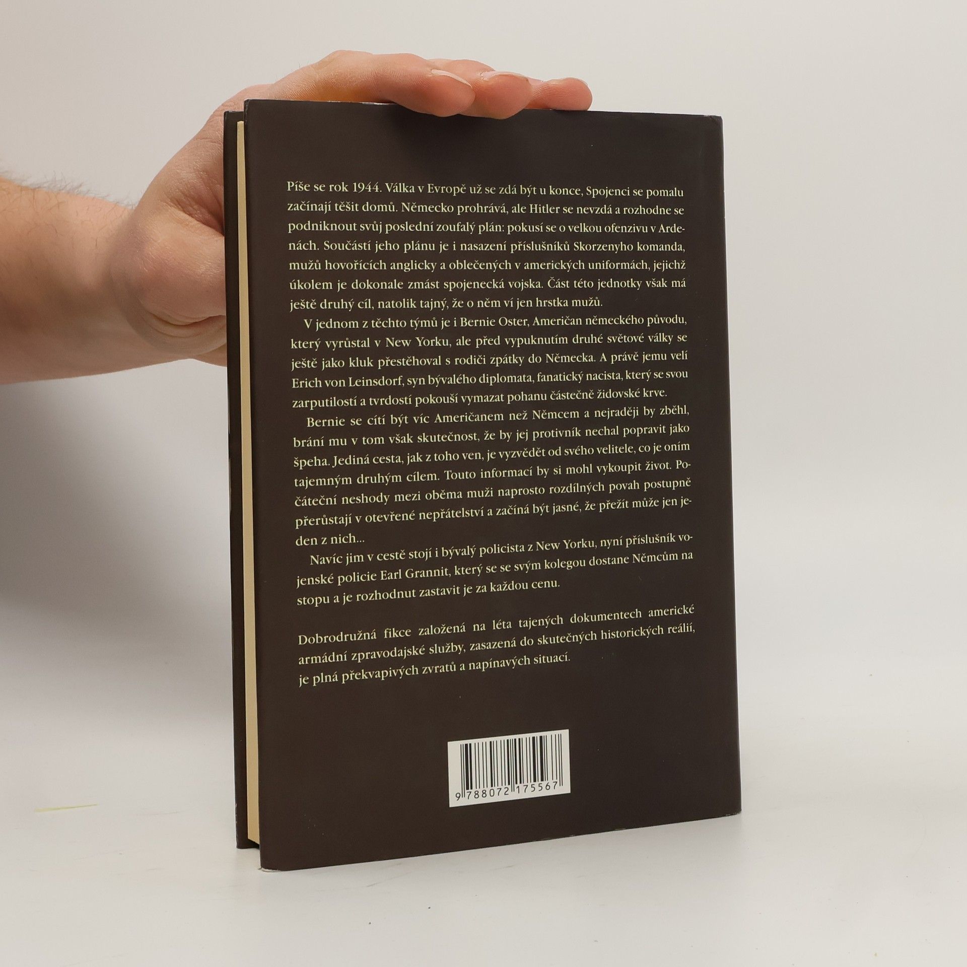 Podzim 1944. Pád Německa se blíží a Američané začínají doufat, že o Vánocích budou doma. Podplukovník Otto Skorzeny z Hitlerova úderného oddílu, který proslul troufalým osvobozením Mussoliniho z vězení, dostal právě příkaz zahájit Operaci Greif. Má za úkol sestavit novou brigádu o dvou tisících anglicky mluvících mužích a poslat je za spojeneckou linii. Tam mají rozkladně působit do doby, než se Německo připraví na novou ofenzívu. Z těchto vojáků Skorzeny vybere skupinku dvaceti dokonale vyškolených mužů, kteří jsou velmi podrobně obeznámeni s celou šíří americké kultury. Jejich mise - druhý cíl má ještě temnější pozadí: kdyby byla úspěšná, změnila by nejen průběh 2. světové války, ale běh celých dějin.