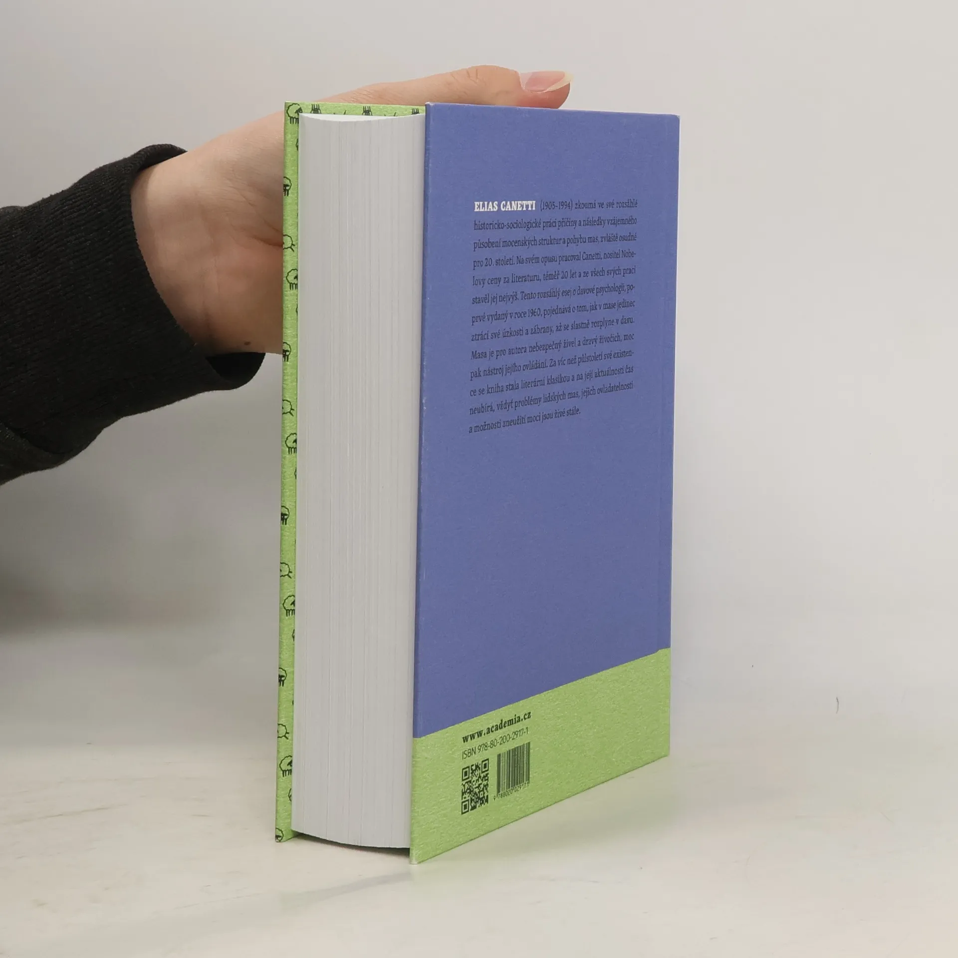 Elias Canetti zkoumá ve své rozsáhlé historicko-sociologické práci příčiny a následky vzájemného působení mocenských struktur a pohybu mas, zvláště osudné pro 20. století. Na svém opusu pracoval Canetti, nositel Nobelovy ceny za literaturu, téměř 20 let a ze všech svých prací stavěl jej nejvýš. Tento rozsáhlý esej o davové psychologii, poprvé vydaný v roce 1960, pojednává o tom, jak v mase jedinec ztrácí své úzkosti a zábrany, až se slastně rozplyne v davu. Masa je pro autora nebezpečný živel a dravý živočich, moc pak nástroj jejího ovládání. Za víc než půlstoletí své existence se kniha stala literární klasikou a na její aktuálnosti čas neubírá, vždyť problémy lidských mas, jejich ovladatelnosti a možnosti zneužití moci jsou živé stále.