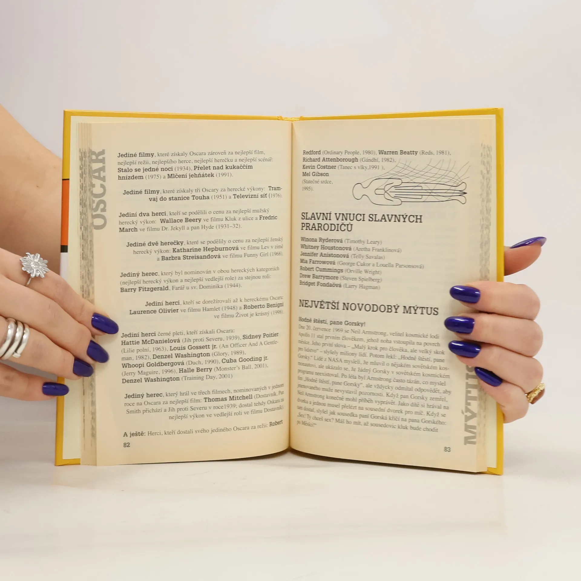 Zábavná publikace přináší zajímavé čtení o slavných osobnostech a informace spíše pro pobavení. Knížka nabízí informace typu: kolik manželství a s kým má za sebou ta či ona filmová hvězda, jaké měly slavné osobnosti koníčky, kteří smrtelně nebezpeční živočichové žijí na naší planetě, seznam nositelek titulu Miss World a mnoho dalších zajímavostí.... celý text