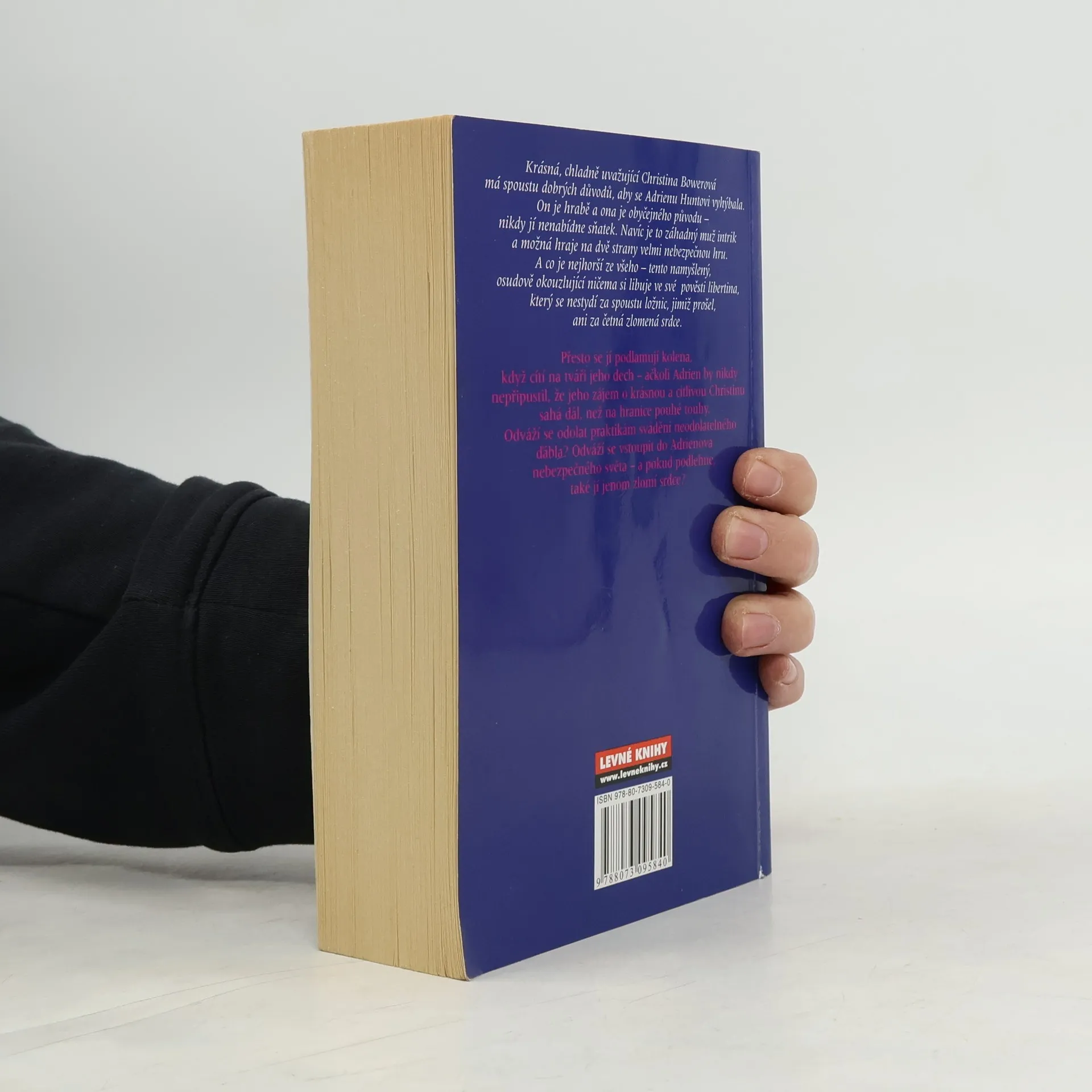 1789-1793 Anglie, Francie Krásná, chladně uvažující Christina Bowerová má spoustu dobrých důvodů, aby se Adrienu Huntovi vyhýbala. On je hrabě a ona je obyčejného původu – nikdy jí nenabídne sňatek. Navíc je to záhadný muž intrik a možná hraje na dvě strany velmi nebezpečnou hru. A co je nejhorší ze všeho – tento namyšlený, osudově okouzlující ničema si libuje ve své pověsti libertina, který se nestydí za spoustu ložnic, jimiž prošel, ani za četná zlomená srdce. Přesto se jí podlamují kolena, když cítí na tváři jeho dech.