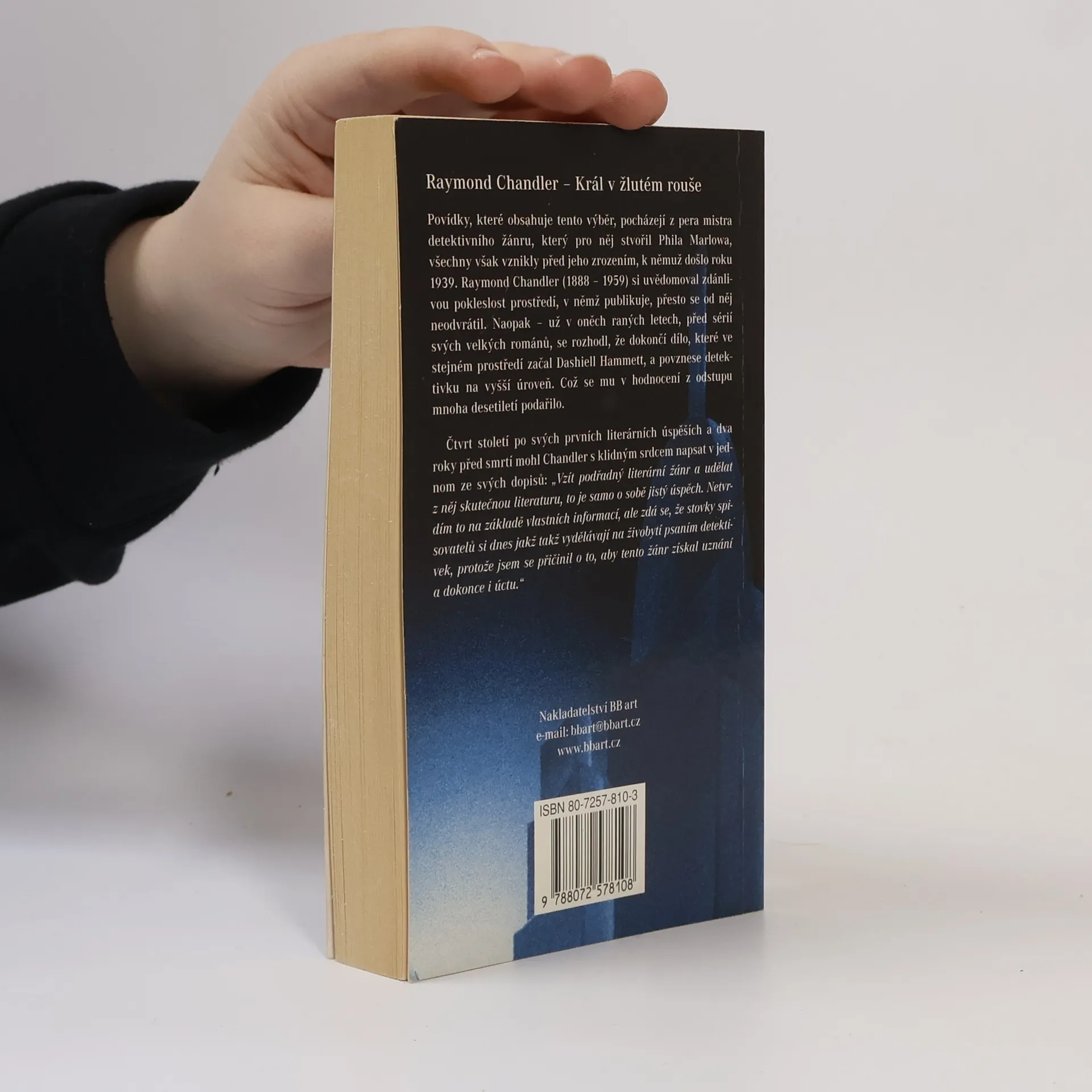 Výběrový almanach Chandlerových raných povídek, jejž vydalo nakladatelství BB Art v kvalitním překladu Tomáše Korbaře a pod názvem jedné z nich – Král v žlutém rouše. Jde o příběhy, jež autor napsal ještě předtím, než přivedl na svět postavu Philippa Marlowa – a vedle děje samotného je tudíž zajímavé sledovat, kterak se jeho obrysy postupně v povídkách vynořují a krystalizují… Není to tedy Phil Marlowe, ale rozhodně už je to Raymond Chandler v plné parádě a stylu vyprávění: úsporného, břitkého, vtipného a cynického. Vyprávění člověka, jenž se dívá na svět dokořán otevřenýma očima a bystře vnímá jeho nelítostnou podstatu. Chuť kvalitního vína se stárnutím vylepšuje: některé povídky, zdá se, mají sklon k témuž. Obsahuje : Nevadský plyn Počkám na tebe-- Král v žlutém rouše Horký vítr Opona Španělská krev Výstřely u "Cyrana"