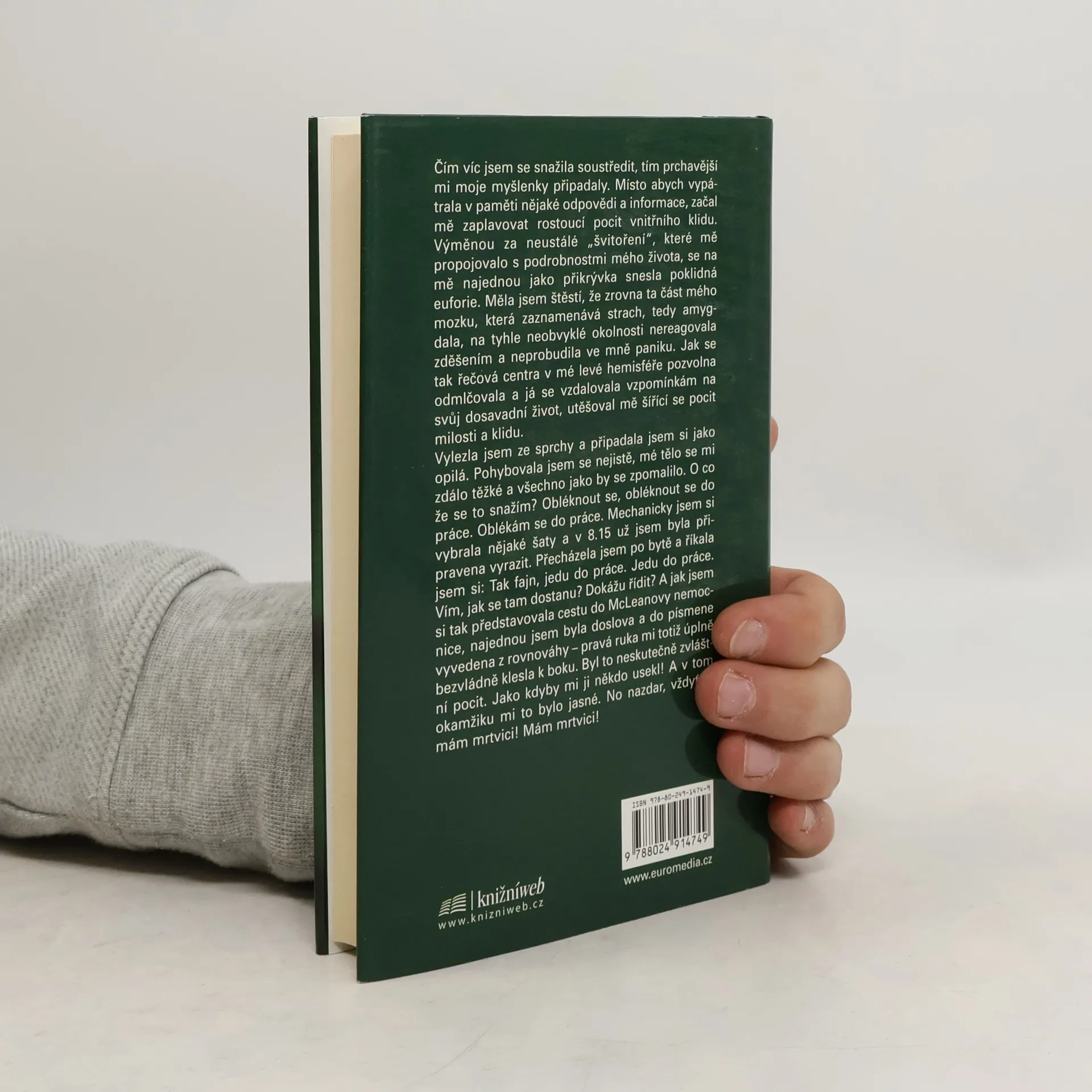 Jedno prosincové ráno se Jill probudila a pod okem ucítila ostrou bolest. Vstala a připadala si nějak podivně, ale stále se domnívala, že nejde o nic vážného. Šla si zacvičit, nachystala si oblečení, vlezla do sprchy - celou dobu se pohybovala jako loutka v podivném snu. Postupně pozoruje, jak se jí zhoršuje koordinace a romlžuje myšlení, snáší se na ni podivné ticho, jako kdyby s ní mozek přestával komunikovat. Nakonec ztratí cit v pravé ruce, a když si konečně uvědomí, že jde opravdu do tuhého, už si ani nedokáže vzpomenout na číslo na pohotovost. V krátkém jasnozřivém záblesku si vybaví telefon do práce a po několika usilovných pokusech i vytočí číslo - vzápětí však zjistí, že už se nedokáže srozumitelně vyjádřit. Nicméně kolega se dovtípí, přijde k ní a odveze ji do nemocnice. Autorka pokračuje v líčení, co se s ní dělo potom, jak ji lékaři stabilizovali, jak probíhala operace, chronologicky uvádí, s čím se musela vyrovnávat a jak pokračovala rehabilitace. Popisuje také, jak její osobnost i charakter ovlivnila skutečnost, že měla vyřazenou z provozu levou hemisféru, a právě problematikou hemisfér a jejich odlišných funkcí se zabývá podrobněji. Nesmírně zajímavá kniha přináší fascinující vhled do pocitů člověka postiženého krvácením do mozku a zároveň ukazuje, že mozek je schopen až zázračné regenerace.