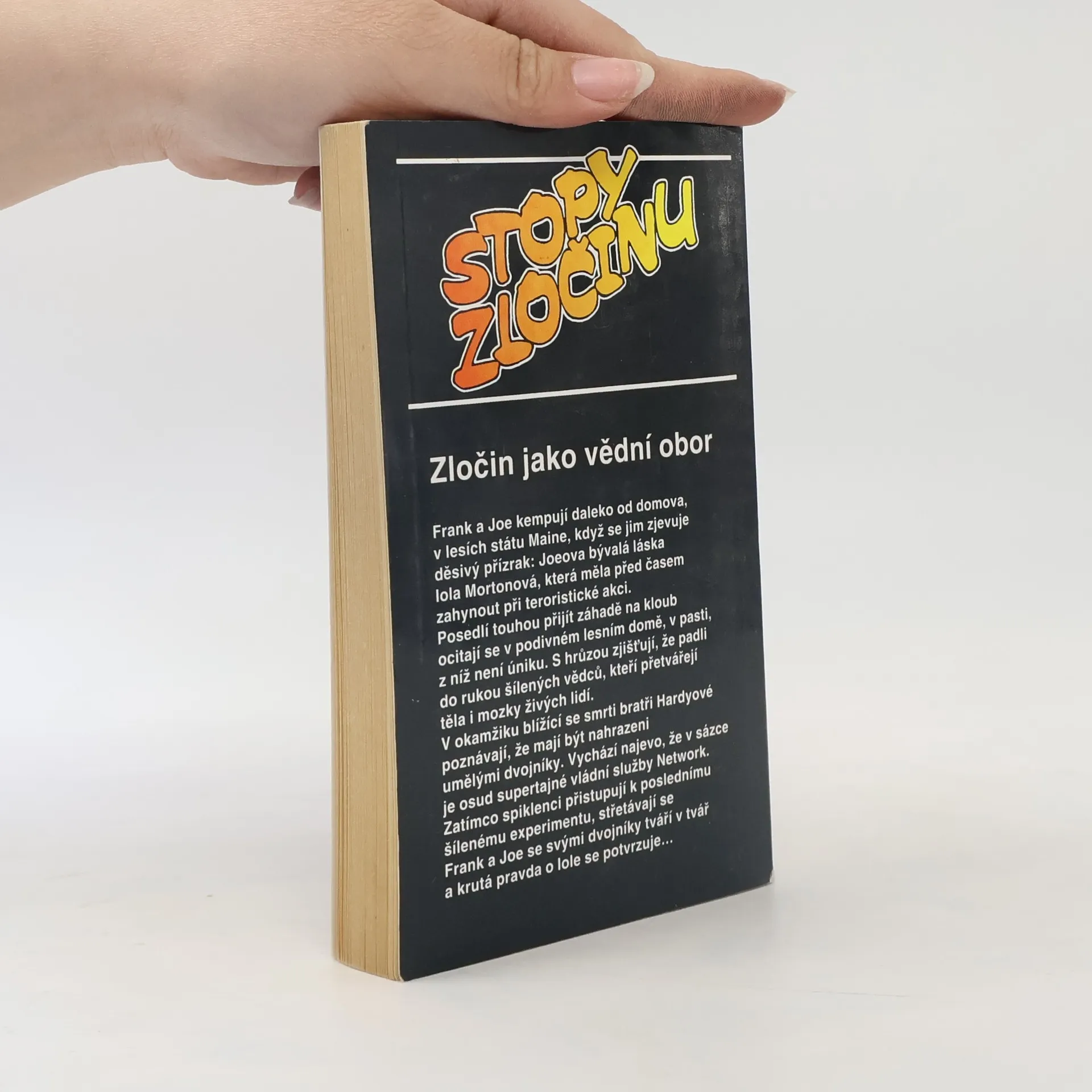 Zločin jako vědní obor. Frank a Joe kempují daleko od domova, v lesích státu Maine, když se jim zjevuje děsivý přízrak: Joeova bývalá láska Iola Mortonová, která měla před časem zahynout při teroristické akci. Posedlí touhou přijít záhadě na kloub ocitají se v podivném lesním domě, v pasti, z níž není úniku. S hrůzou zjišťují, že padli do rukou šílených vědců, kteří přetvářejí těla i mozky živých lidí. V okamžiku blížící se smrti bratři Hardyové poznávají, že mají být nahrazeni umělými dvojníky...... celý text