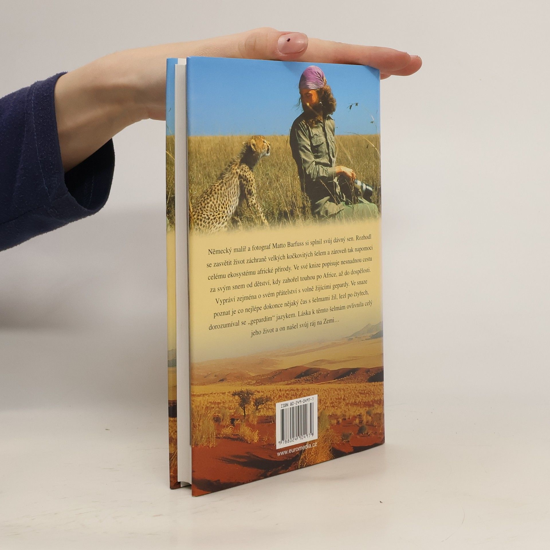 Německý malíř a fotograf Matto Barfuss se rozhodl zasvětit život záchraně velkých kočkovitých šelem, a zároveň tak napomoci ekosystému africké přírody. Ve své knize líčí, jak se z dospívajícího chlapce nadšeného pro Afriku stal aktivním ochráncem přírody. Obdiv a láska k velkým kočkovitým šelmám od základů změnila jeho život. Ve snaze poznat je co nejlépe dokonce nějaký čas se šelmami žil, lezl po čtyřech, dorozumíval se "gepardím" jazykem. Líčí i jeden z největších úspěchů svého snažení - přípravu dvou gepardů odchovaných v zajetí na život v přírodě a jejich vypuštění na svobodu. Prostřednictvím deníku přibližuje čtenářům krásu africké savany, způsoby a život gepardů a své přátelství s touto nádhernou a nejrychlejší šelmou na světě. ... celý text