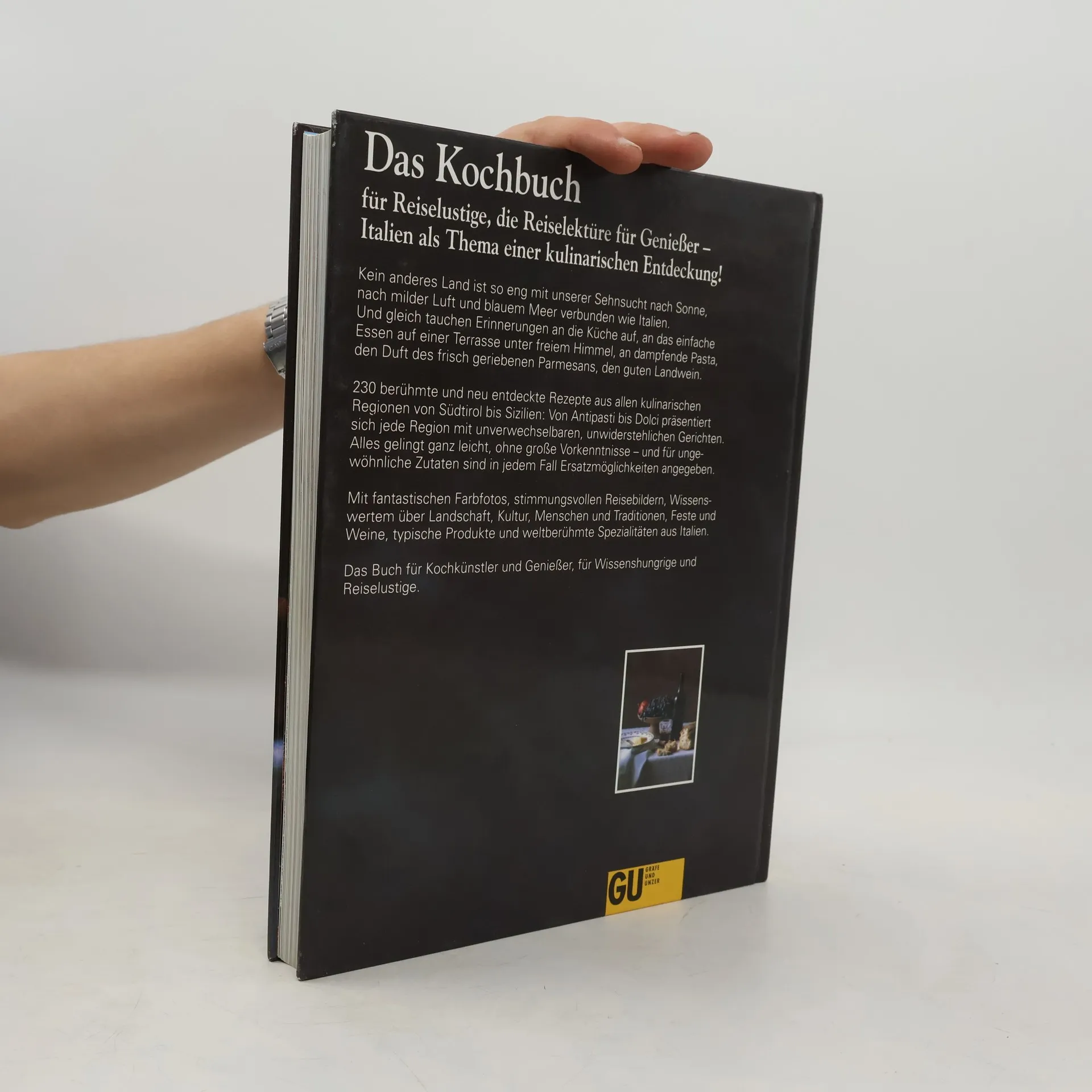 Genießen Sie die kulinarischen Köstlichkeiten Italiens, des Landes mit der Küche, die von Experten als die beste der Welt genannt wird. Die italienischen Regionen verfügen dank ihrer klimatischen Unterschiede über differenzierte Marktangebote, und diese führen zu einer Vielfalt an regionalen Spezialitäten. Lernen Sie in 230 echten, das heißt typischen Rezepten die Eigenschaften der italienischen Küche kennen, einer Küche, die reich ist an Düften und köstlichen Spezialitäten, einer Küche mit großer kulinarischer Tradition. Jedes der acht Kapitel führt in die jeweilige Region ein, zeigt die Hintergründe der speziellen Küche, die Mentalität der Menschen. Es folgen Hinweise auf kulinarische Sehenswürdigkeiten und Feste. Und dann werden die typischen Rezepte aus dieser Landschaft vorgestellt, von Antipasti (Vorspeisen) über Primi Piatti (Teigwaren, Reis und Suppen) und Secondi Piatti (Fisch, Fleisch, Geflügel, Wild und Eiergerichte) bis zu Dolci (Desserts). Alle diese Köstlichkeiten werden so beschrieben, daß Sie sie mühelos selbst zubereiten können. Ein Kochvergnügen für Sie, ein Genuß für Ihre Gäste.
