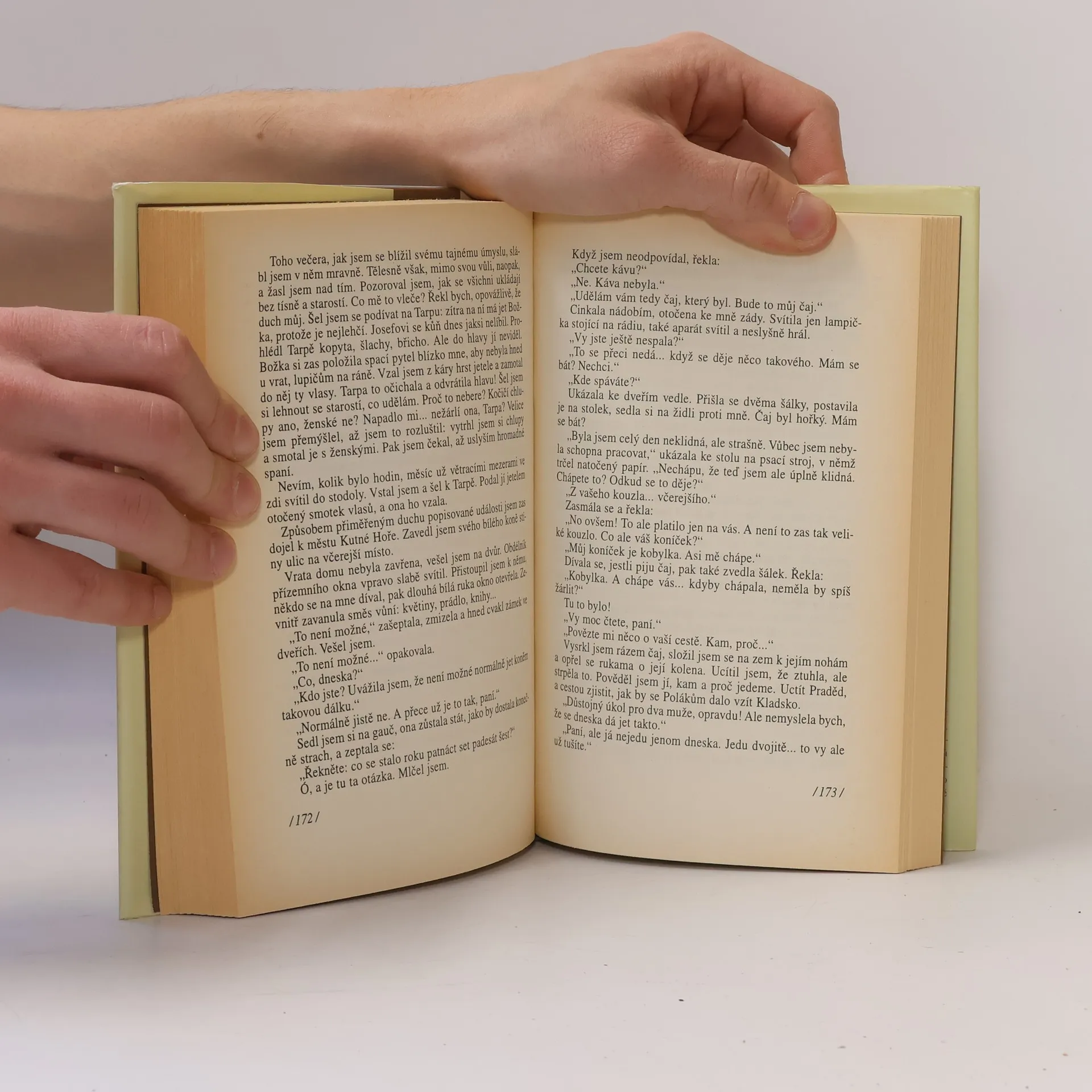 Román o koních a lidech. Na záložce se dočtete: „Vůz tažený párem skvělých koní dorazil do Kutné Hory, zatímco krajinou, skrz pole a louky, šli jezdci v sedlech. Byl srpen roku 1966. Vůz krytý plachtou se šinul dolů náměstím, sledován z chodníků obyvatelstvem, mezi nímž si vozataj výpravy Jan Špička všiml jedné ženy, jež si ho všimla také. Seskočil s vozu, který jel dál, a vrátil se, aby na ženu pohlédl zblízka, ta však mezi-tím zašla do knihkupectví. Jan Špička z náměstí divnou náhodou zabočil do jedné uličky a vešel na dvůr jednoho starého domu, aby tu na ženu počkal. Nebyla to však náhoda, že ta žena opravdu přišla! Oba byli svou příhodou zaujati, takže si řekli několik vět, a nic víc, protože vtom Ludvík Vaculík přestal psát. K rukopisu počatému v roce 1969 se vrátil po jedenatřiceti letech. Zkušenější autorsky i mužsky pokračoval prostě v líčení Špičkovy cesty na Praděd i jeho nočních návratů do Kutné Hory. Skutečná, tvrdě romantická cesta na Praděd byla zároveň i symbolickou výpravou do minulosti lidí a krajiny: východními Čechami přes polské Kladsko na severní Moravu a zpátky do středu Čech. Zvláštním, neplánovaným efektem je dnes i to, jak se všecko, co Ludvík Vaculík píše o tehdejších poměrech v redakci Literárních novin i v zemědělství, stalo minulostí. Jan Špička“