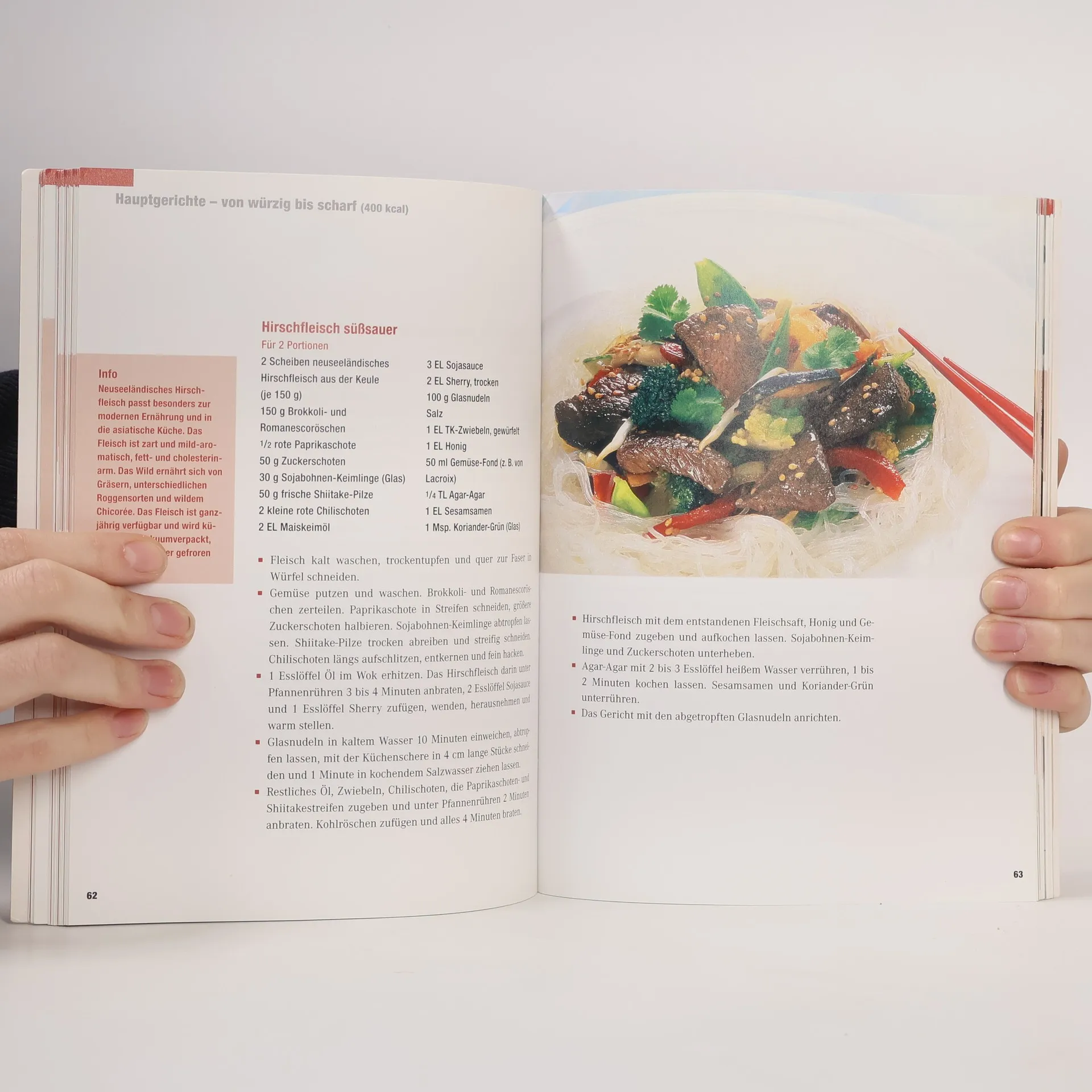 Kochen mit dem Wok ist immer beliebt: Die schnellen Gerichte sind raffiniert, leicht, gesund und abwechslungsreich - auch für Abnehmwillige. Die Rezepte reichen von Hühnersuppe mit Kokosmilch über scharfes Rindfleisch mit Orange bis zur gedämpften Forelle mit Pak-Soi: Mit dieser 1000-Kalorien-Diät können Wok-Fans pro Woche 2 bis 3 Kilo abspecken.