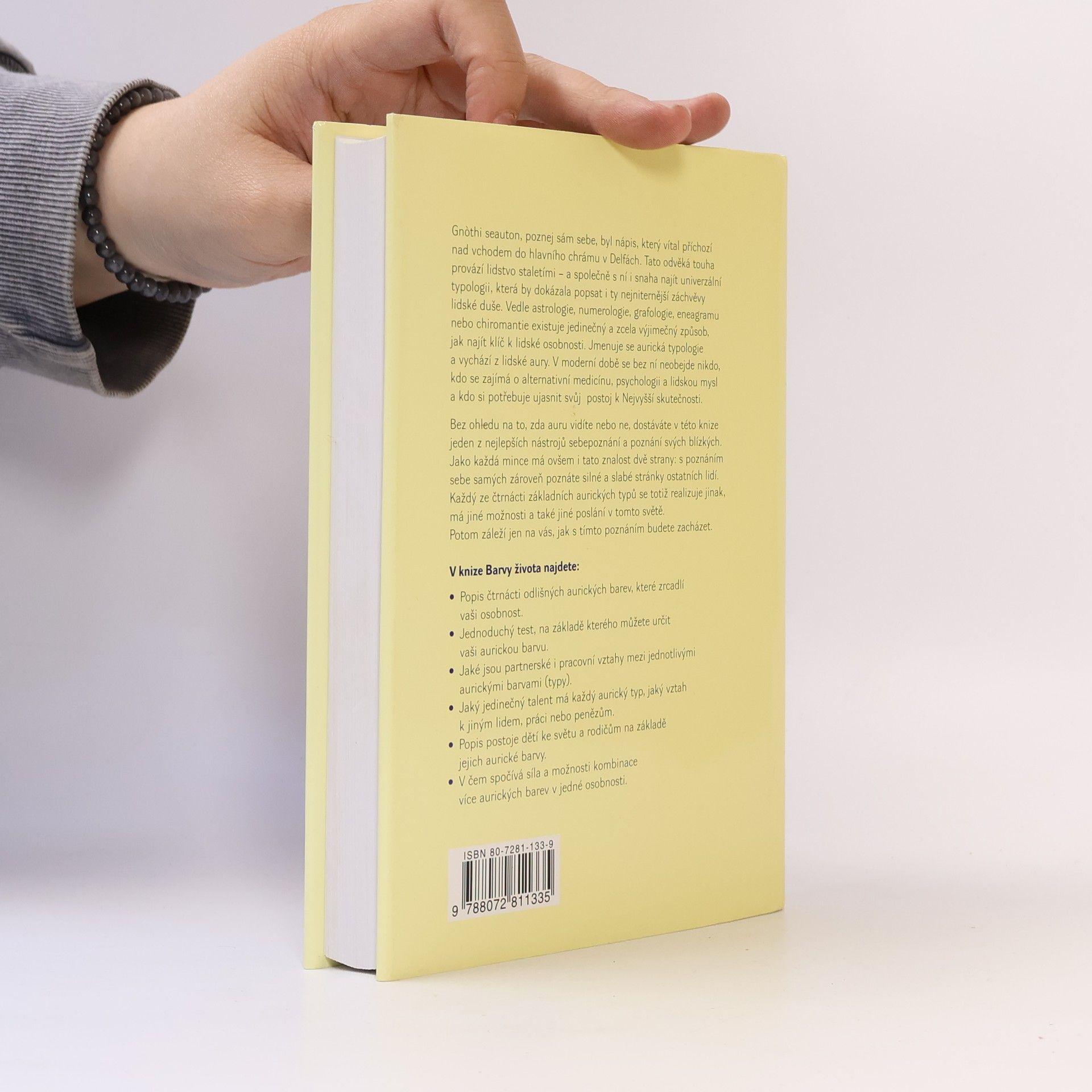 Legendární kniha přední americké psychoterapeutky popisuje aurické typy na základě speciálního psychologického testu, který umožňuje poznat svou auru i bez jejího bezprostředního vnímání. Ve čtrnácti základních skupinách přibližuje tajemství kombinací aurických barev a jejich vzájemné působení v mezilidských a pracovních vztazích. Obsahuje vynikající test, díky němuž každý může určit barvu své aury a aury svých blízkých. Autorka, známá esoterická učitelka a konzultantka, pracuje na základě znalostí aury a pořádá semináře pro odborníky v oblasti psychologie, vzdělávání a zdraví. Její výzkumy byly uznány Mezinárodní asociací pro nové vědy. V knize najdete popis čtrnácti aurických barev, jednoduchý test pro určení vaší aurické barvy, analýzu partnerských a pracovních vztahů mezi různými aurickými typy, jedinečné talenty jednotlivých typů a jejich vztah k ostatním lidem, práci a penězům. Dále se dozvíte o postoji dětí k světu a rodičům na základě jejich aurické barvy a o síle kombinace více aurických barev v jedné osobnosti.