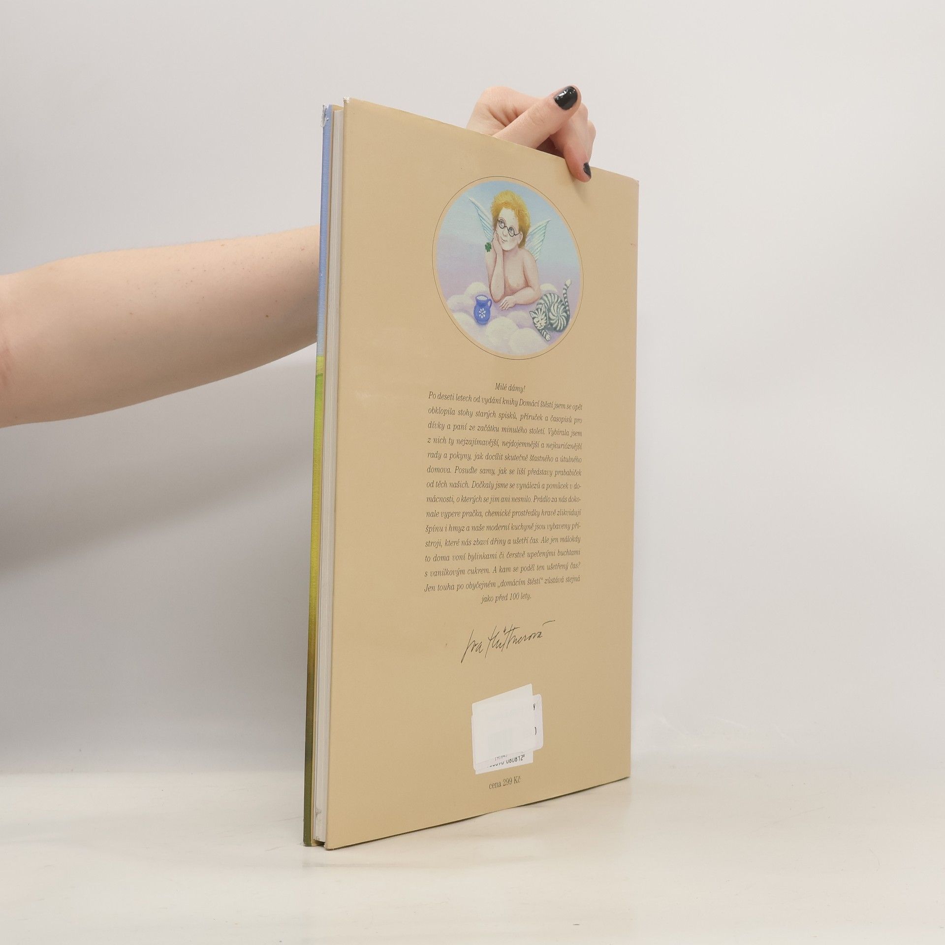 Volné pokračování úspěšné knihy Domácí štěstí aneb jak si správně v životě vésti, která vyšla před deseti lety a vzbudila velký zájem čtenářů všech generací. V originální celobarevné publikaci známá herečka a výtvarnice sesbírala mnoho dalších rad a poučení našich babiček a prababiček, které doplnila půvabnými ilustracemi. Milé dámy! Po deseti letech od vydání Domácího štěstí jsem se opět obklopila stohy starých spisků, příruček a časopisů pro dívky a paní ze začátku minulého století. Vybírala jsme z nich ty nejzajímavější, nejdojemnější a nejkurióznější rady a pokyny, jak docílit skutečně šťastného a útulného domova. Posuďte samy, jak se liší představy prababiček od těch našich. Dočkaly jsme se vynálezů a pomůcek v domácnosti, o kterých se jim ani nesnilo. Prádlo za nás dokonale vypere pračka, chemické prostředky hravě zlikvidují špínu i hmyz a naše moderní kuchyně jsou vybaveny přístroji, které nás zbaví dřiny a ušetří čas. Ale jen málokdy to doma voní bylinkami či čerstvě upečenými buchtami s vanilkovým cukrem. A kam se poděl ten ušetřený čas? Jen touha po obyčejném „domácím štěstí“ zůstává stejná jako před 100 lety. Iva Hüttnerová
