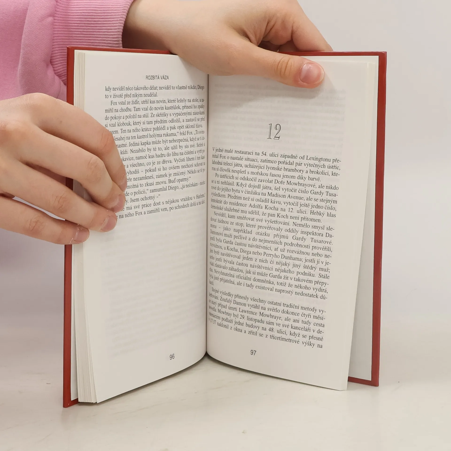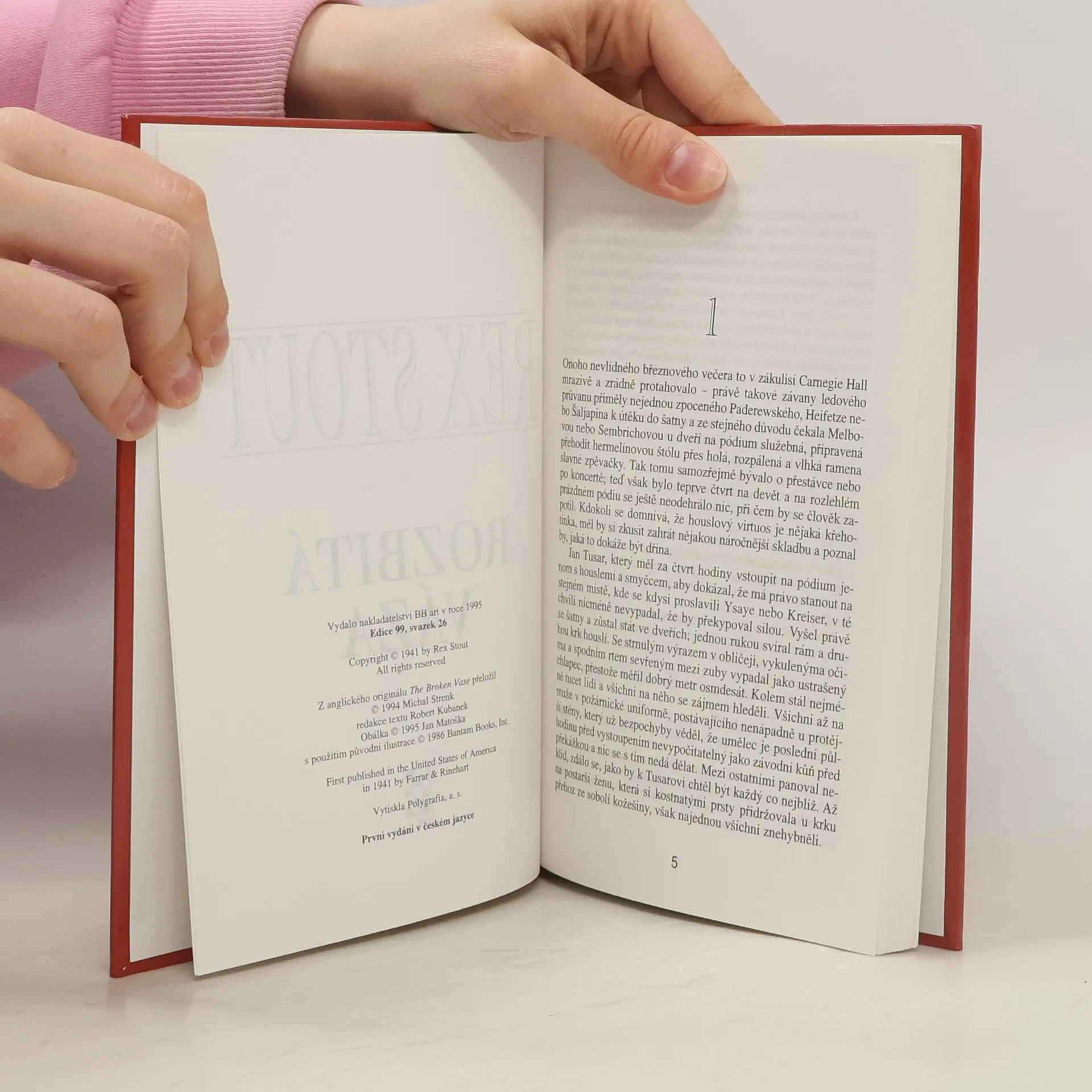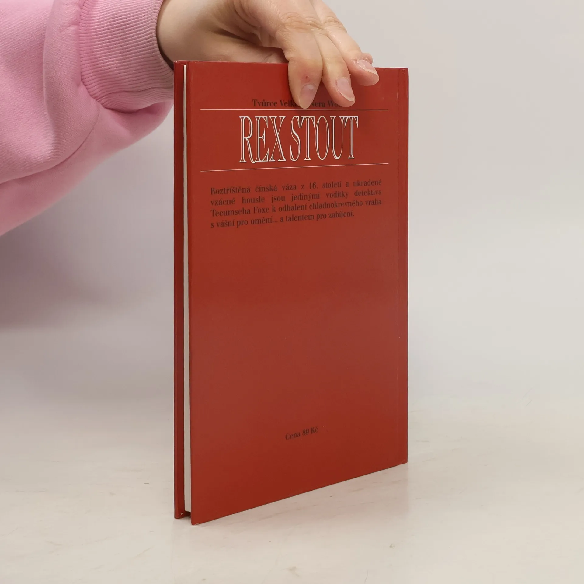 Podtitul: „Tentokrát Detektiv Tecumseh Fox“. Roztříštěná čínská váza z 16.století a poškozené vzácné housle jsou jedinými vodítky detektiva Foxe k odhalení chladnokrevného vraha s vášní pro umění. Z anglického originálu „The Broken Vase“ (First published in the United states ofAmerica in 1941 by Farrar Rinehart) přeložil © Michal Strenk. Grafická úprava obálky Jan Matoška, Robin Brichta s použitím původní ilustrace ©1986 Bantam Books, Inc. Lesklé tvrdé laminované desky.