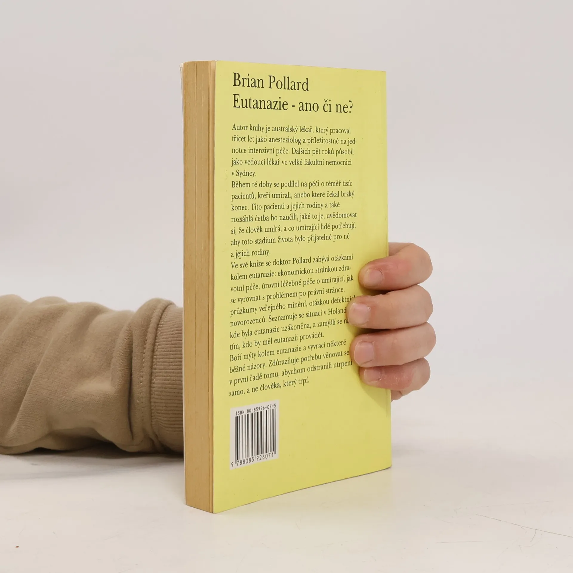 Ve své knize se doktor Pollar zabývá otázkami kolem eutanazie: ekonomickou stránkou zdravotní péče, úrovní léčebné péče o umírající, jak se vyrovnat s problémem po právní stránce, průzkumy veřejného mínění, otázkou defektních novorozenců. Seznamuje se situací v Holandsku, kde byla eutanazie uzákoněna a zamýšlí se nad tím, kdo by měl eutanazii provádět. Boří mýty kolem eutanazie a vyvrací některé běžné názory. Zdůrazňuje potřebu věnovat se v první řadě tomu, abychom odstranili utrpení samo, a ne člověka, který trpí.