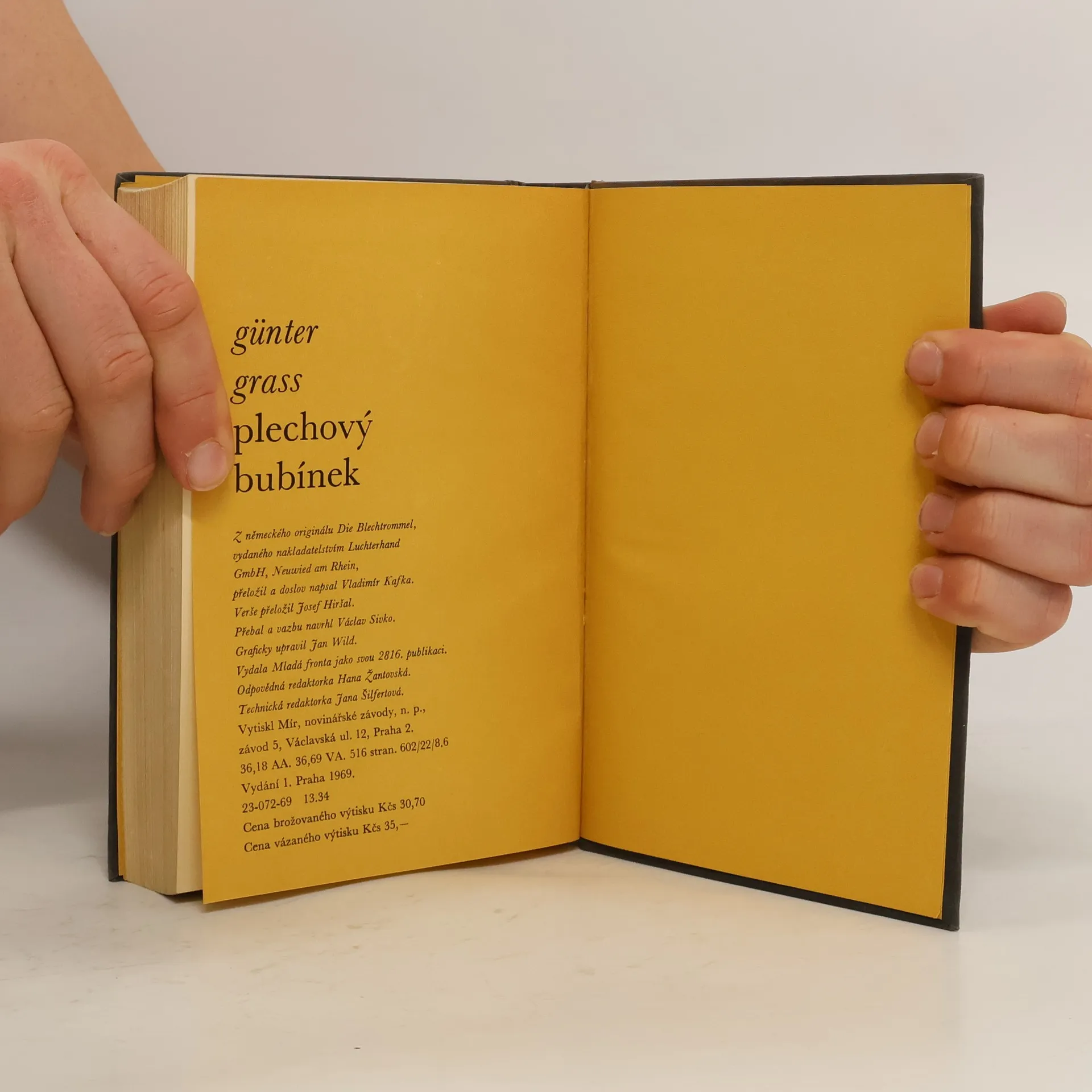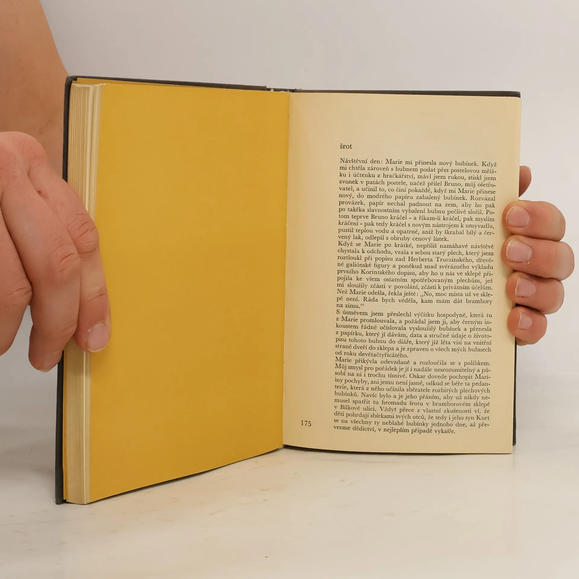 Úspěšný román německého, v Gdaňsku narozeného prozaika, básníka a dramatika. Životní historie třicetiletého muže trpasličího vzrůstu s hrbem a nadměrně velkou hlavou, jakéhosi filozofujícího blázna, který jako chovanec psychiatrické léčebny bubnuje na plechový bubínek, někdejší svou hračku, a takto si vyvolává vzpomínky na svůj dřívější život. Autor pohledem tohoto skřeta (který je např. přesvědčen, že muž normální výšky trpí vedle něho komplexem velikosti) podává krvavou grotesku dnešního světa a zejména pak karikující obraz německé historie posledních desetiletí. Kritika označuje dílo za největší román poslední doby.