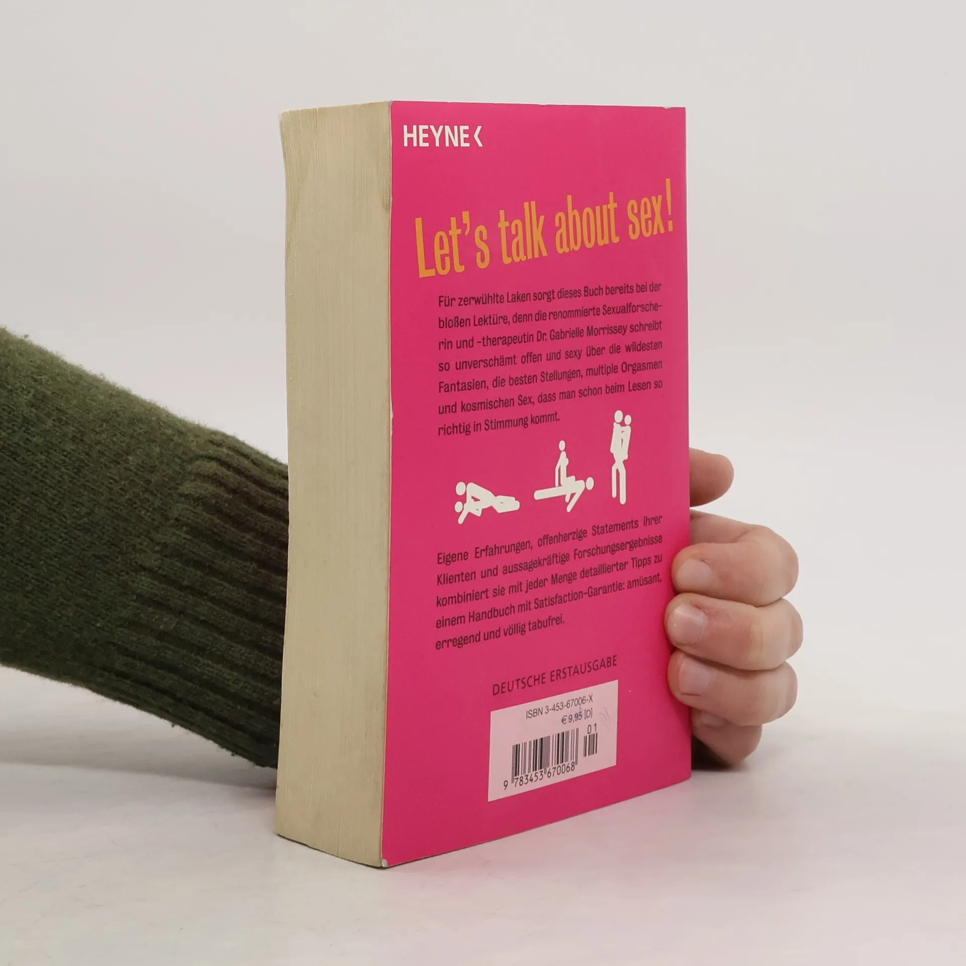 Für zerwühlte Laken sorgt dieses Buch schon bei der bloßen Lektüre. Denn die renommierte Sexualforscherin und -therapeutin Dr. Gabrielle Morrissey schreibt ungemein sexy und unverschämt offen über die besten Positionen, die wildesten Fantasien, multiple Orgasmen und kosmischen Sex. Eigene Erfahrungen, Forschungsergebnisse, aufschlussreiche Statements höchst unterschiedlicher Menschen und jede Menge handfeste Tipps verschmilzt sie zu einem amüsanten, informativen und erregenden Handbuch, das keine Frage unbeantwortet lässt. „ Besser wurde lange nicht über Sex geschrieben.“ Herald Sun