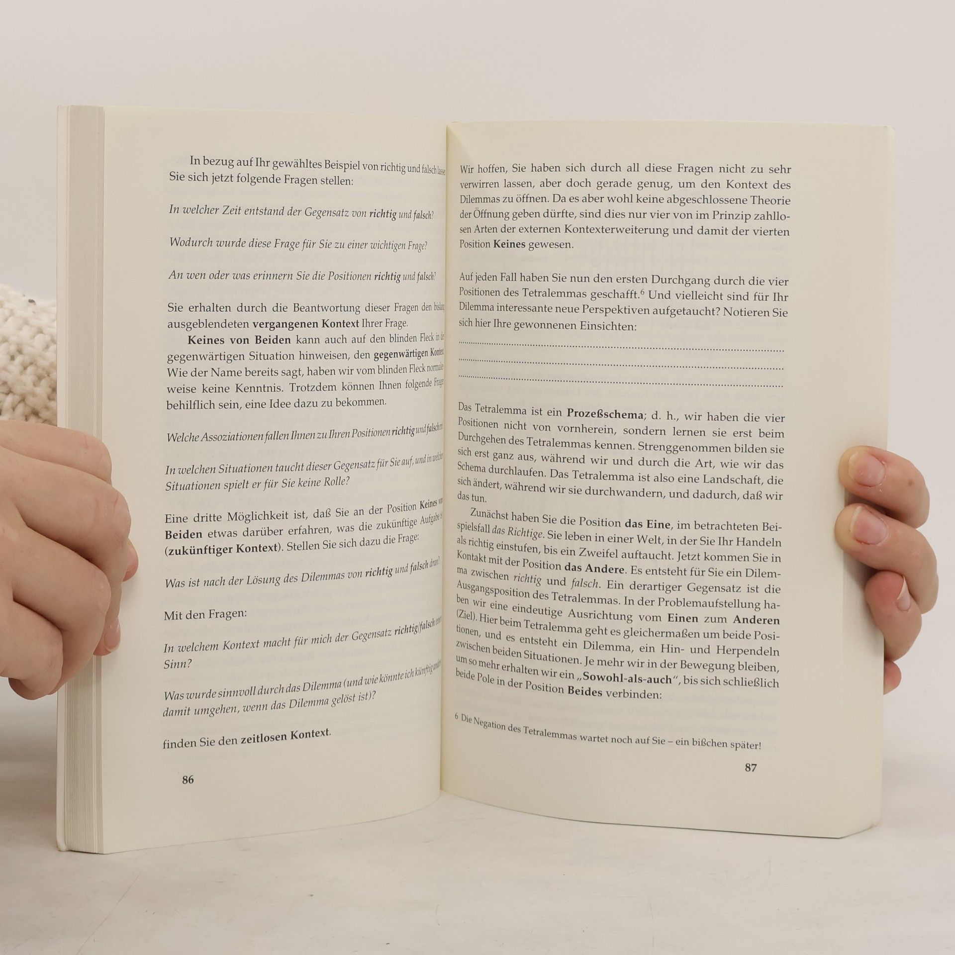 Gegensätzliche Optionen und Handlungsmöglichkeiten machen Entscheidungen schwer, unerträglich oder manchmal sogar unmöglich? - Ganz im Gegenteil: Diese Schule des Querdenkens befähigt die Leser, Fragen, Probleme und Entscheidungssituationen völlig neu und auf gute Lösungen hin zu strukturieren.