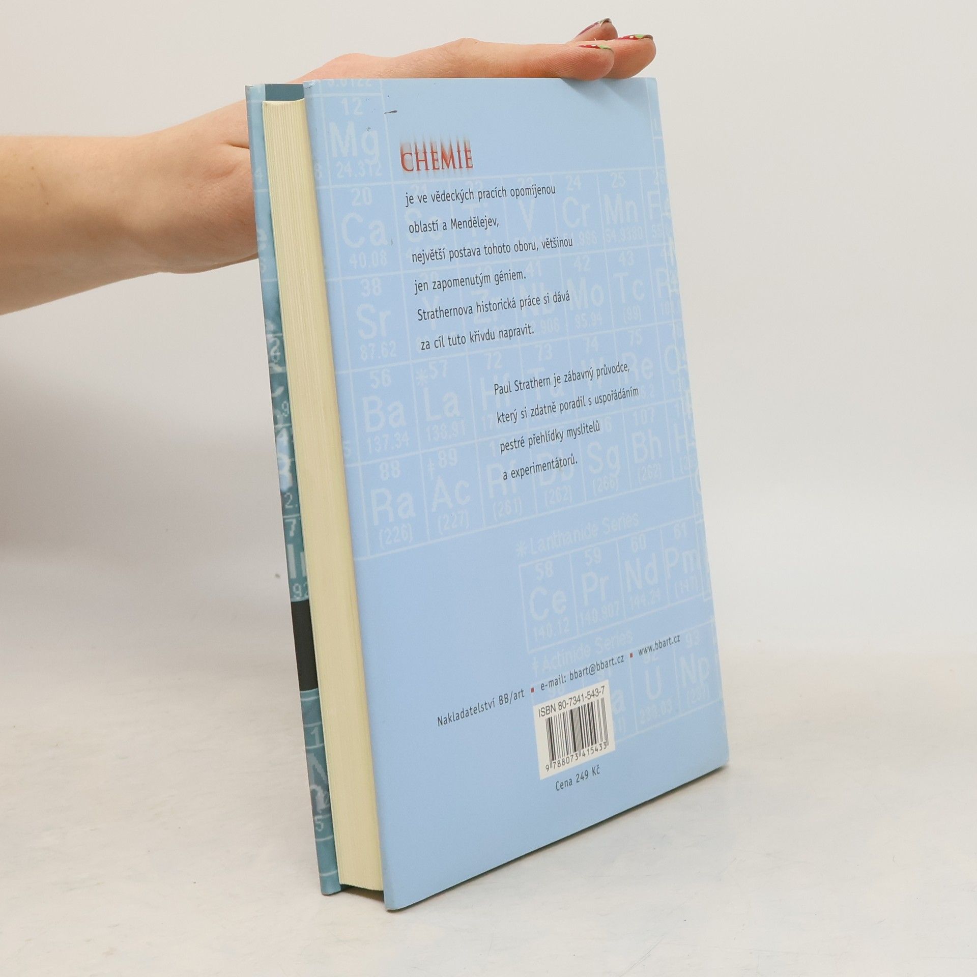Chemie je ve vědeckých pracích opomíjenou oblastí a Mendělejev, největší postava tohoto oboru, většinou jen zapomenutým géniem. Strathernova historická práce si dává za cíl tuto křivdu napravit. V této knize, které je vlastní vytříbenost a erudovanost, ale přesto neztrácí nic na své čtivosti, objasňuje literární cenou oceněný spisovatel a interpret složitých teorií Paul Strathern dramatické dějiny chemie prostřednictvím putování po stopách prvků. Dějiny oboru jsou orámovány životním příběhem ruského vědce devatenáctého století Dmitrije Mendělejeva, kterého jednoho dne u psacího stolu přepadla dřímota, z níž se probudil poté, co přišel na myšlenku periodické soustavy prvků – popisu, na kterém je založena moderní chemie a jehož vypracování klasifikovalo tento obor v nadcházejícím věku jako vědu. Od starověké filosofie přes středověkou alchymii až ke štěpení atomu – toto je pravdivý příběh zrodu chemie a role, kterou sehrál sen jednoho muže.