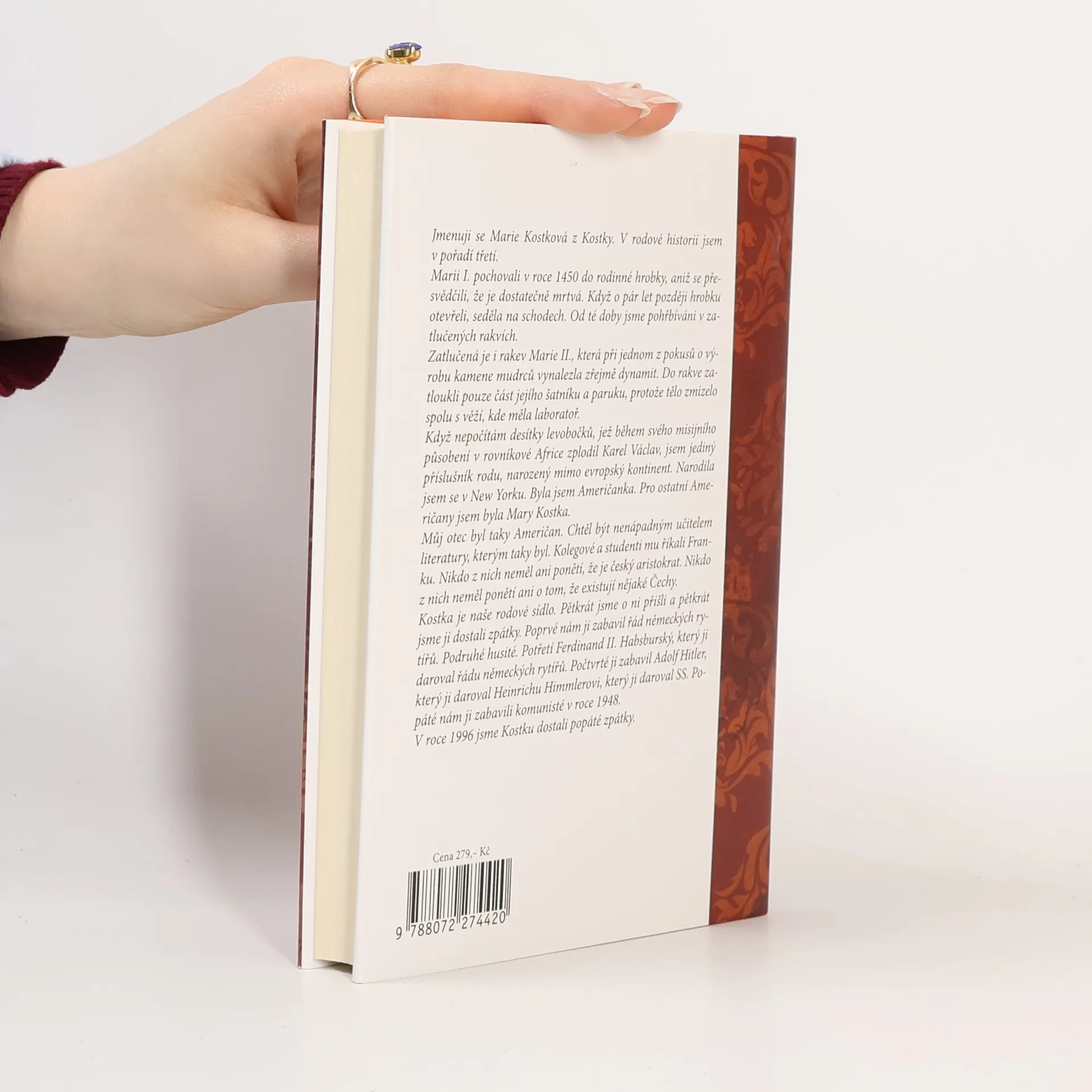 Již v pátém dílu ze série mimořádně úspěšných humoristických románů o "poslední aristokratce" mimo jiné dojde k následujícím událostem: Marie Kostková se rozzuří na Maxe Launa, zorganizuje výpravu do Nizozemského království, dostane briliantové šperky nesmírné hodnoty, objeví v sobě vášeň pro nakupování, v doprovodu své matky a paní Tiché odletí do Haagu, kde se setká s královnou Beatrix, omylem navštíví obchod s marihuanou, zažije oslnivý úspěch na recepci v královském paláci a potká sympatického mladého muže. Paní Tichá poprvé poletí letadlem a Jejímu Veličenstvu Beatrix se při audienci představí jako "nějaká Tichá." ViVien hraběnka Kostková zastaví přísun Prozacu a dočká se ocenění jako dvojnice princezny Diany. Zámecký zahradník překoná úzkost ze smrti a začne toužit po lásce. Kastelán Josef zůstane stejný.