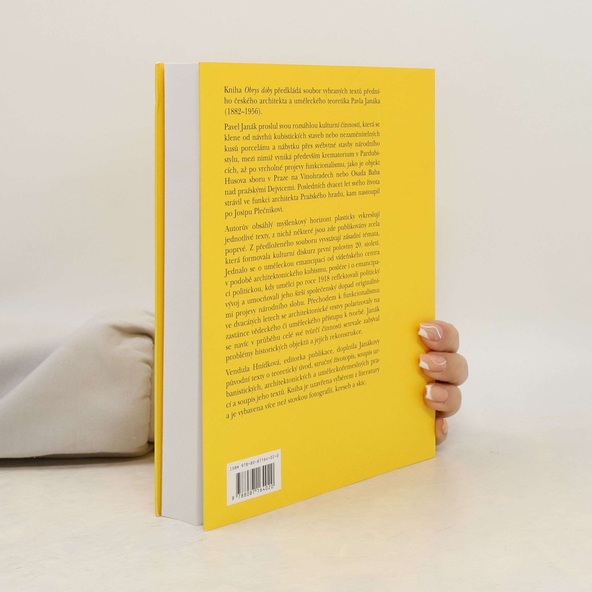 Kniha Obrys doby představuje soubor vybraných textů významného českého architekta a teoretika Pavla Janáka (1882-1956), známého svou bohatou kulturní činností. Jeho dílo zahrnuje návrhy kubistických staveb, unikátní porcelán a nábytek, stejně jako stavby v národním stylu, přičemž krematorium v Pardubicích a funkcionalistické objekty jako Husův sbor v Praze a Osada Baba patří k jeho vrcholným realizacím. V posledních dvaceti letech života působil jako architekt Pražského hradu, kde navázal na Josipa Plečnika, a soustavně se věnoval rekonstrukcím historických objektů. Antologie, sestavená chronologicky, zahrnuje nejen klíčové texty, které jsou součástí české architektonické teorie první poloviny 20. století, ale také méně známé literární dokumenty. Publikace obsahuje proslulé statě formující architektonický diskurz té doby a inspirativní příspěvky v oblasti užitého umění. Editorka Vendula Hnídková zahrnula také texty vztahující se k významným osobnostem umělecké scény a analýze bydlení ve dvacátých a třicátých letech. Kniha obsahuje teoretický úvod, stručný životopis, soupis Janákových prací a jeho textů, a je doplněna o více než stovku dokumentárních fotografií, kreseb a skic.