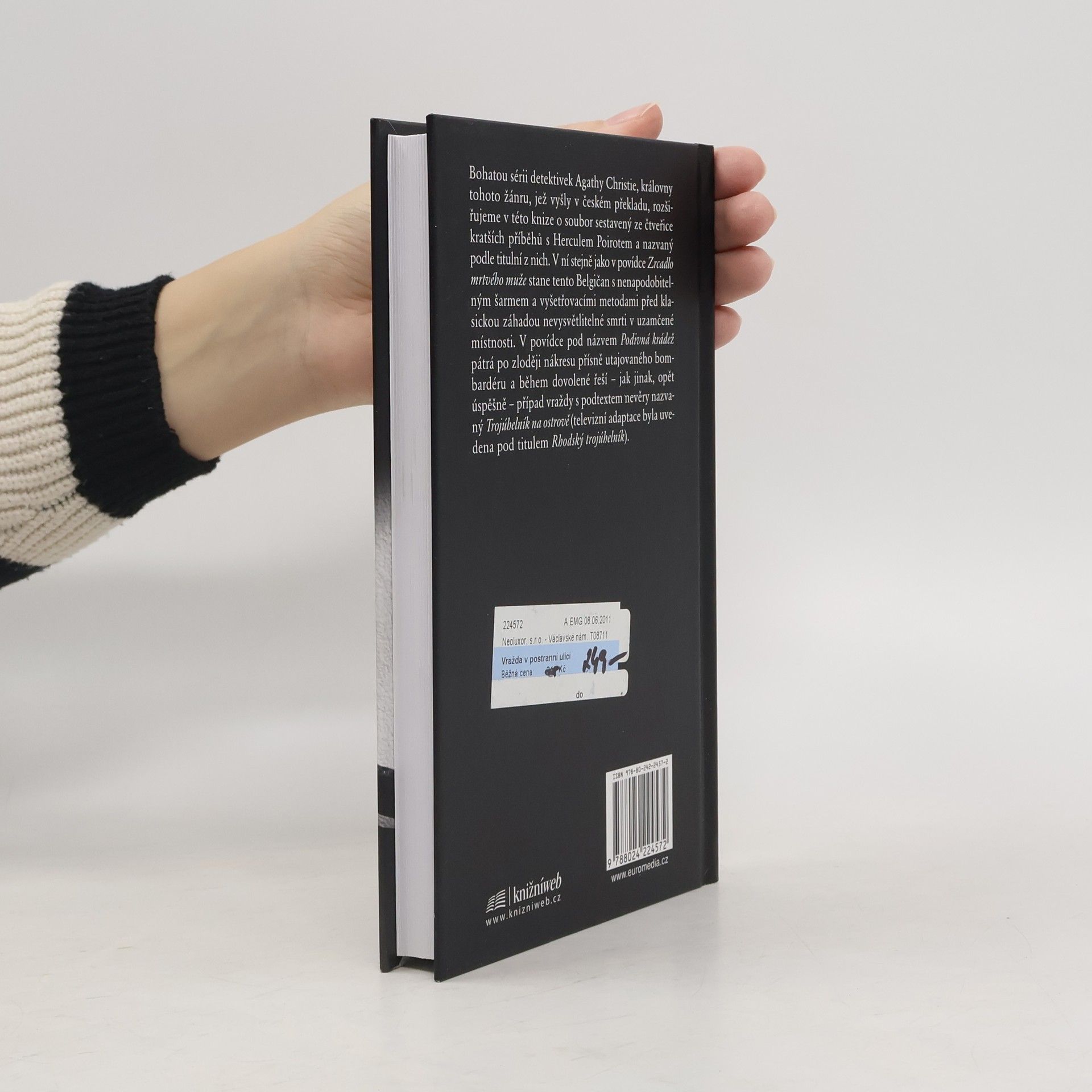 Bohatou sérii detektivek Agathy Christie, královny tohoto žánru, jež vyšly v českém překladu, rozšiřujeme v této knize o soubor sestavený ze čtveřice kratších příběhů s Herculem Poirotem a nazvaný podle titulní z nich. V ní stejně jako v povídce Zrcadlo mrtvého muže stane tento Belgičan s nenapodobitelným šarmem a vyšetřovacími metodami před klasickou záhadou nevysvětlitelné smrti v uzamčené místnosti. V povídce pod názvem Podivná krádež pátrá po zloději nákresu přísně utajovaného bombardéru a během dovolené řeší – jak jinak, opět úspěšně – případ vraždy s podtextem nevěry nazvaný Trojúhelník na ostrově (televizní adaptace byla uvedena pod titulem Rhodský trojúhelník).