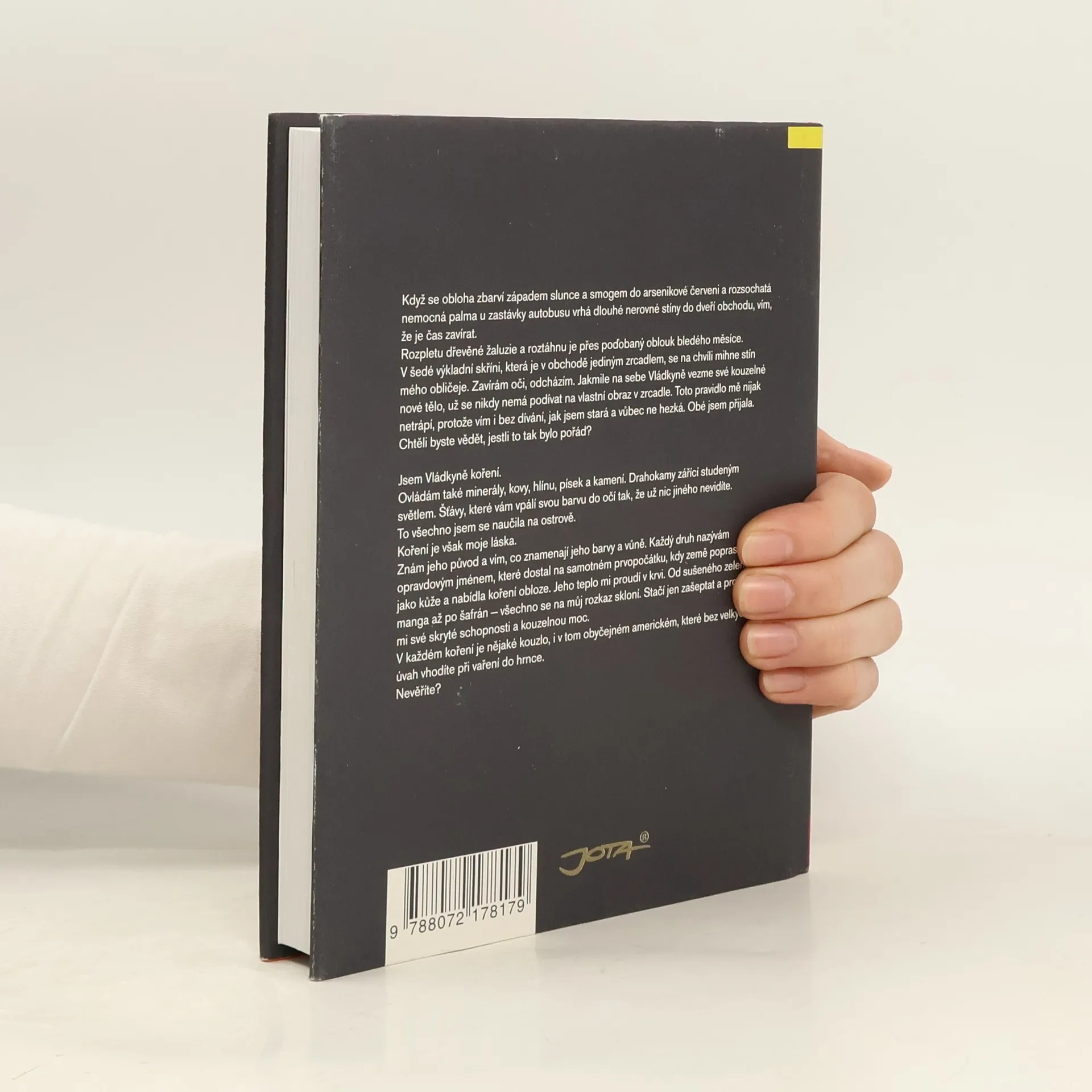 Poetický román známé americké autorky indického původu. V malé indické vesnici v dávném bezčasí přichází za zvláštních okolností na svět nemilovaná dcera s věšteckým nadáním. Dívka nepřímo zaviní smrt vlastních rodičů a neštěstí obyvatel vesnice. Po letech strastí i dobrodružství se dostává na opuštěný ostrov, kde žije tajemná stará vědma se svými učednicemi. Zde se dívka stává vládkyní a zároveň nejponíženější služebnicí kouzelného koření, ochránkyní a utěšitelkou lidí. Po iniciaci ohněm získává děvče, nyní nesoucí jméno Tilo, novou podobu. Budí se jako stará žena, majitelka obchodu s kořením v současném San Francisku. Její obchod se stává místem, na které utíkají pro radu a pomoc lidé různých povah a odlišného společenského postavení z řad indických imigrantů: týraná manželka, taxikář hledající lásku, zoufalý dědeček vnučky, která se snaží vymknout ze sevření přísných pravidel tradiční indické rodiny. Podaří se Tilo, hledající nejlepší koření pro klid duší ostatních, nalézt vlastní klid prostřednictvím dobré magie? Nebo se po setkání s tajemným Američanem, který ohrozí její vyrovnanost i kouzelné schopnosti, rozhodne nedodržet slib, kterým se zavázala, a spustí lavinu neblahých událostí?