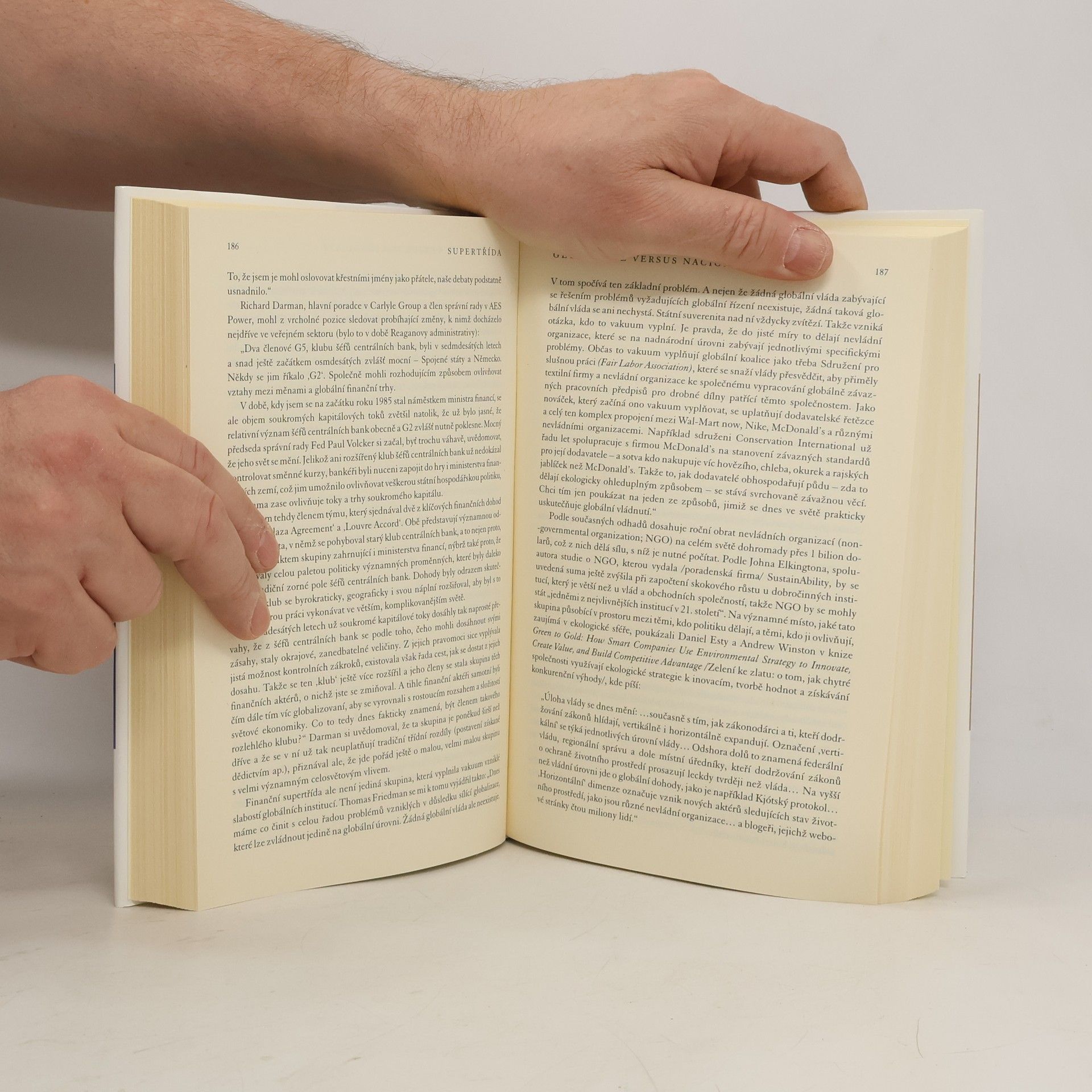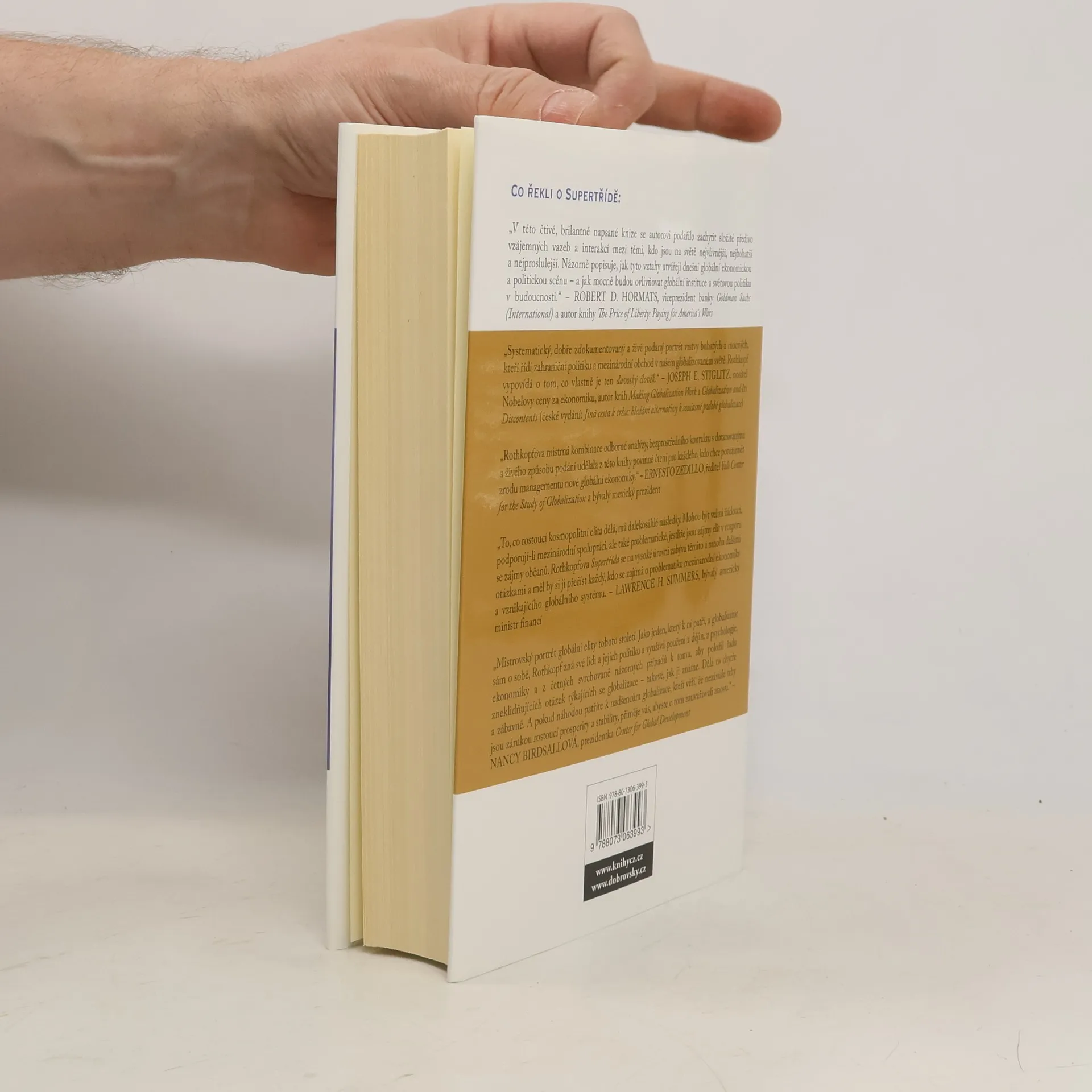 Je jich šest tisíc a závisí na nich životy šesti miliard tvořících celé lidstvo. Ovládají trhy, rozhodují o příjmech a mzdách, daních a úrocích, o práci – kde bude a odkud zmizí –, dosazují vlády, drží v rukou páky mezinárodní politiky. Postarali se o nevídaný růst globálního bohatství – hlavně ovšem svého. Na tuto kosmopolitní elitu – bankéře, manažery a správní rady mezinárodních společností, ruské oligarchy, naftové šejky, magnáty mediálního a zábavního průmyslu, esa mezinárodní politiky – na to, jak (si) žijí a jak „to dělají“, vrhá břitce kritický (i sebekritický) pohled člověk, který k nim měl blízko – někdejší člen Clintonova týmu, Kissingerův obchodní partner a bývalý vysoký úředník amerického ministerstva obchodu.