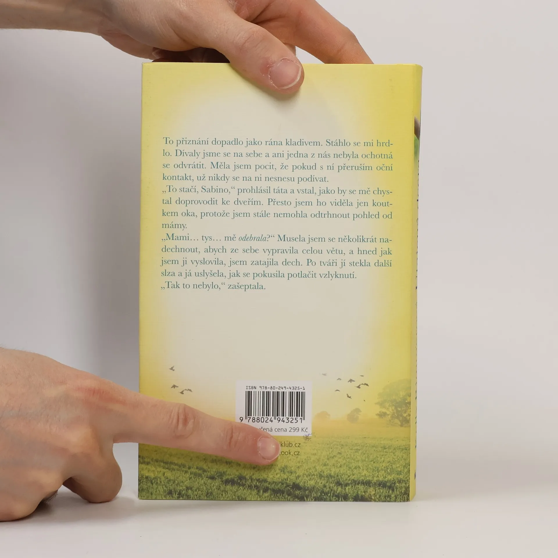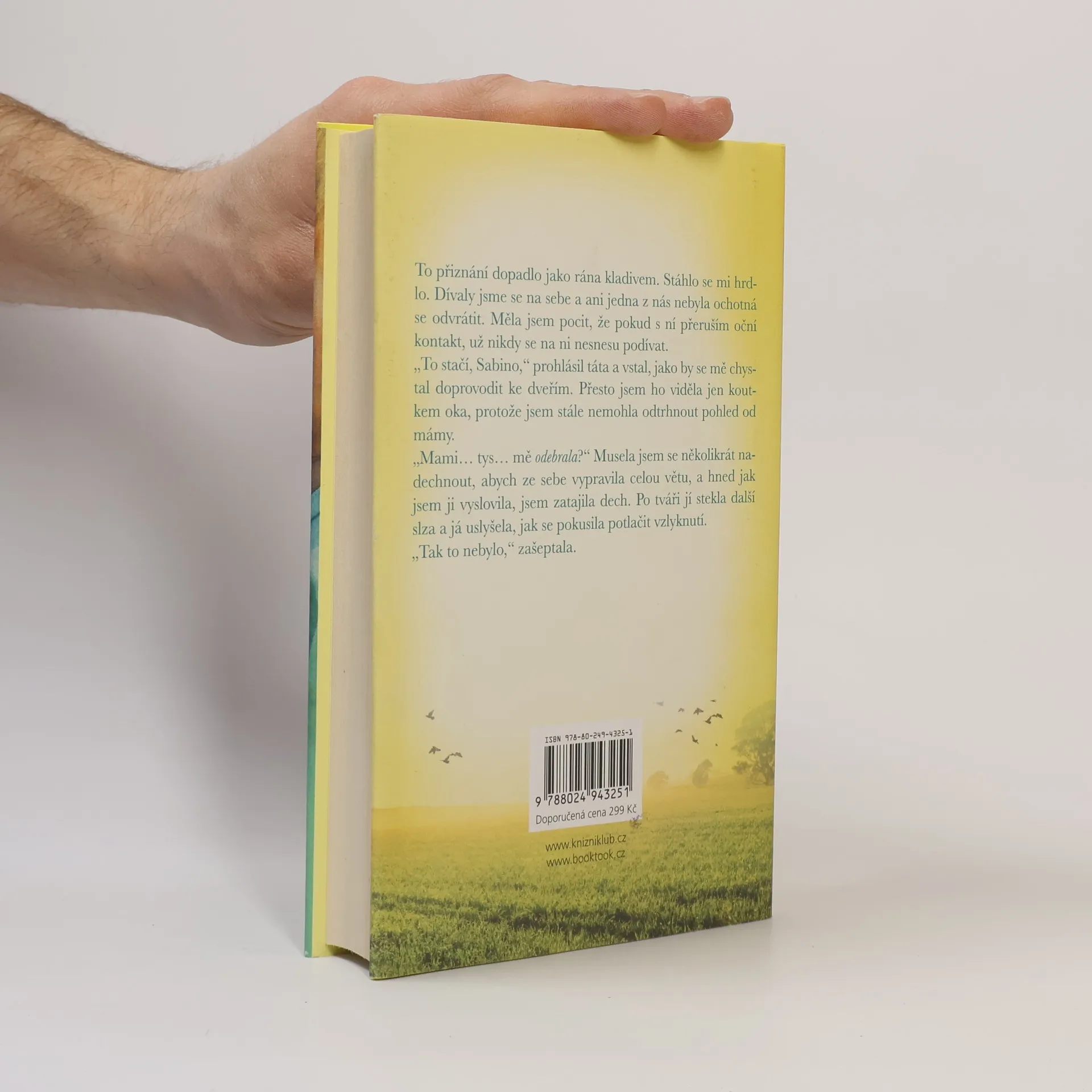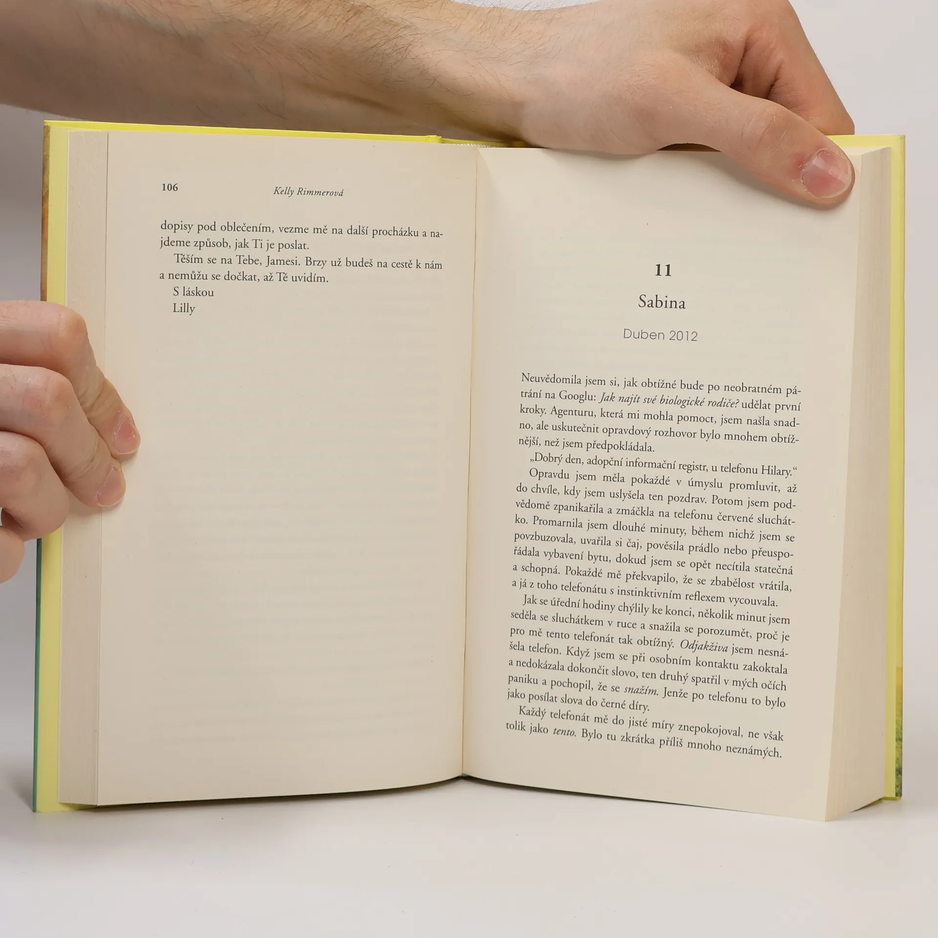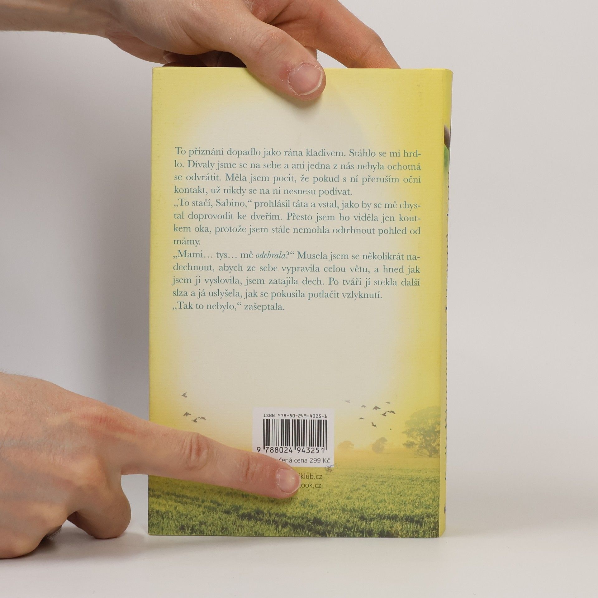 „Adoptovali jsme tě.“ Tahle krátká věta obrátila Sabině život naruby. Najednou se svět rozdělil na Před a Po. Sabině je právě 38 let a je těhotná. Zdá se jí nepochopitelné, jak by nějaká matka mohla dát své dítě k adopci. A proč jí o tom rodiče již dávno neřekli? Rozhodne se, že musí za každou cenu najít ženu, která jí dala pryč. To, co zjistí, nakonec nezmění jen Sabinu, ale především dvě ženy, které ji po celá ta léta hluboce milovaly.