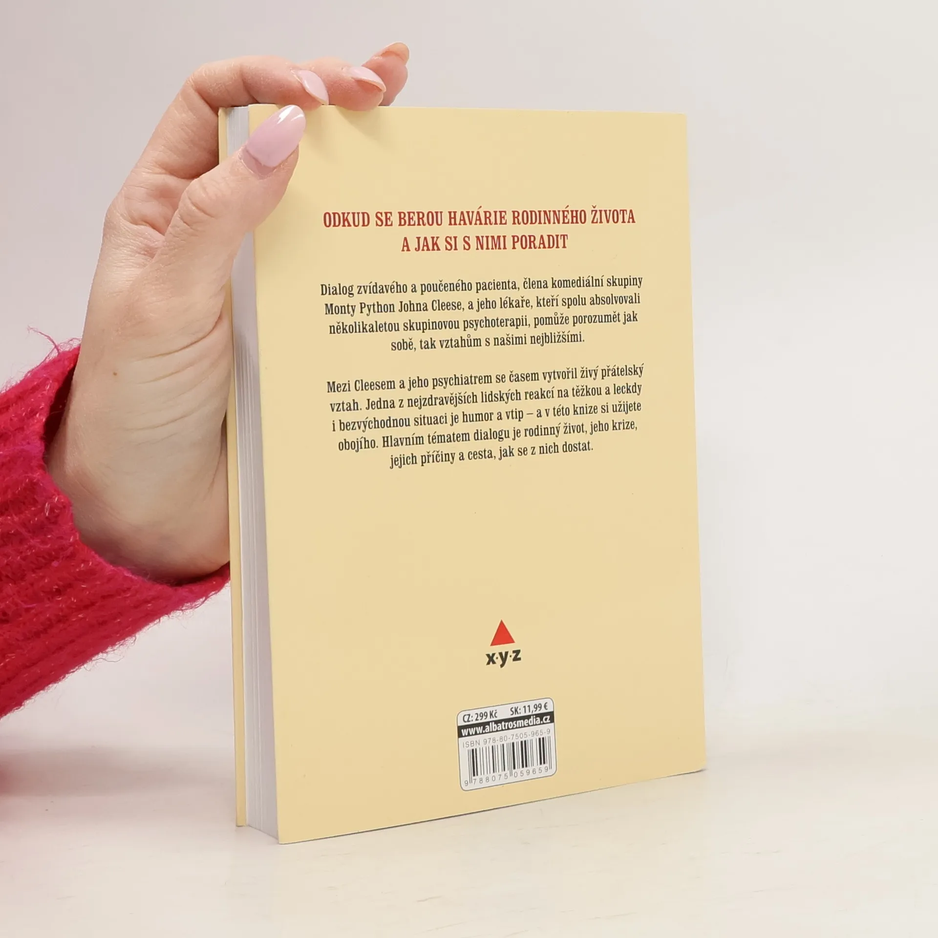 Dialog zvídavého a poučeného pacienta, člena komediální skupiny Monty Python Johna Cleese, a jeho lékaře, kteří spolu absolvovali několikaletou skupinovou psychoterapii, pomůže porozumět jak sobě, tak vztahům s našimi nejbližšími lidmi. Mezi Cleesem a jeho psychiatrem se časem vytvořil živý přátelský vztah. Jedna z nejzdravějších lidských reakcí na těžkou a leckdy i bezvýchodnou situaci je humor a vtip – a v této knize si užijete obojího. Hlavním tématem dialogu je rodinný život, jeho krize, jejich příčiny a cesta, jak se z nich dostat.