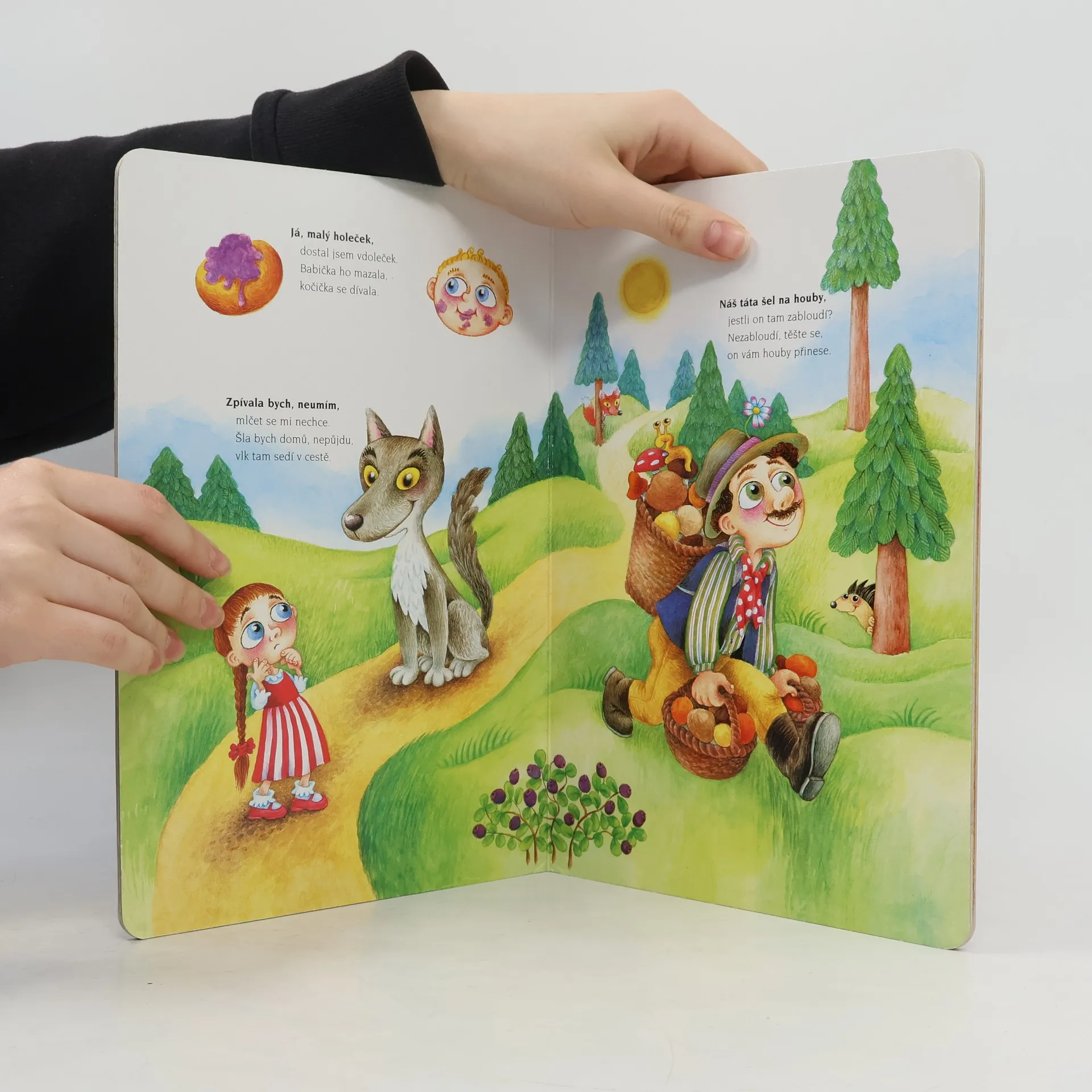 Nádherně ilustrované leporelo s výběrem nejznámějších českých říkadel a písniček, jako jsou Běží liška k Táboru, Kolo, kolo mlýnský nebo Had leze z díry, jistě potěší každého.