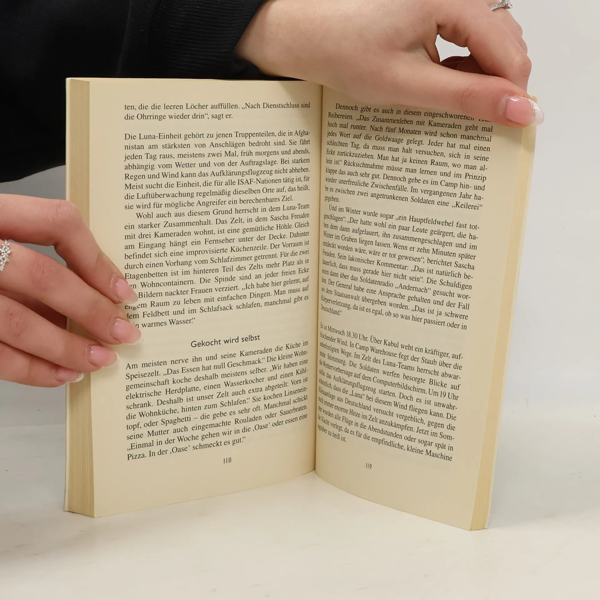 Die Bundeswehr beteiligt sich seit 2001 am ISAF-Einsatz in Afghanistan. Wie sieht der Soldatenalltag jenseits von Politiker-Besuchen aus? Wie reagieren die Einheimischen auf die deutschen Truppen? In ihrer spannenden Reportage berichtet die Autorin von Erfahrungen, Ängsten und persönlichen Entwicklungen der Soldatinnen und Soldaten. Das einzige Buch zum Thema.