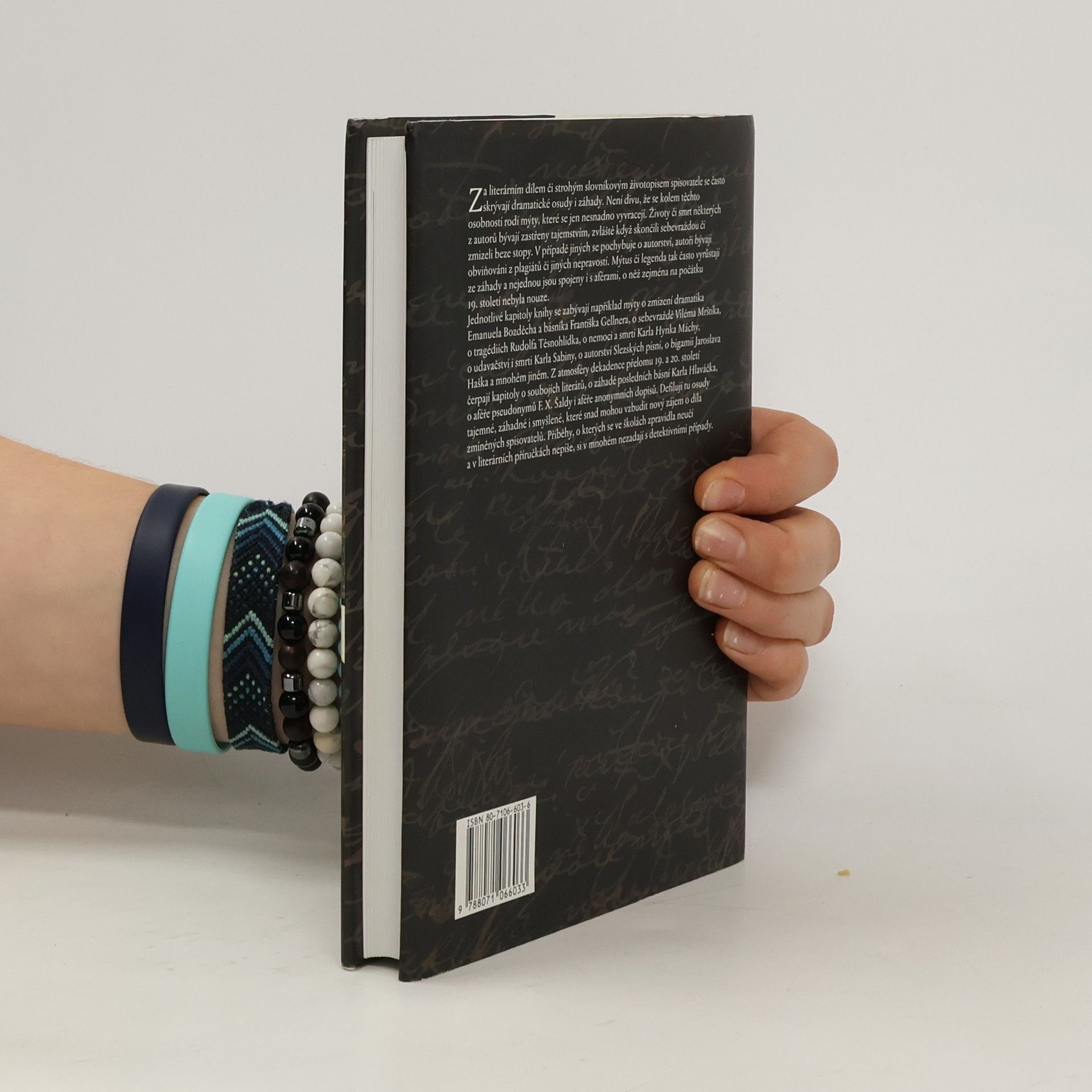 Otazníky nad životy a díly českých spisovatelů. Za literárním dílem či strohým slovníkovým životopisem spisovatele se často skrývají dramatické osudy i záhady. Není divu, že se kolem těchto osobností rodí mýty, které se nesnadno vyvracejí. Životy či smrt některých autorů bývají zastřeny tajemstvím, zvláště když skončili sebevraždou nebo zmizeli beze stopy. V případě jiných se pochybuje o autorství, autoři bývají obviňováni z plagiátů či jiných nepravostí. Defilují zde osudy tajemné, záhadné, smyšlené, které vzbuzují nový zájem o díla zmíněných spisovatelů. Příběhy, o kterých se ve školách neučí a v literárních příručkách nepíše, si v mnohém nezadají s detektivními případy.