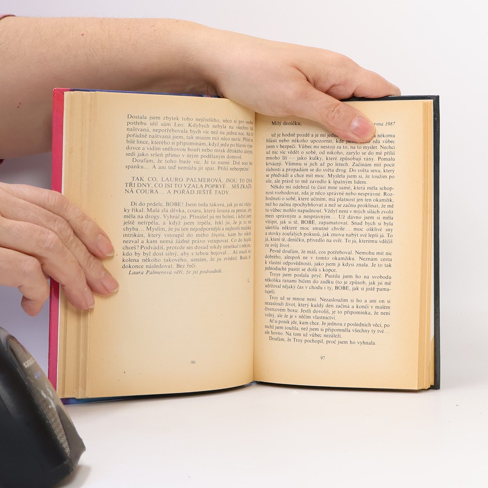Tajný deník Laury Palmerové je klíčovou součástí amerického televizního seriálu Twin Peaks, který večer co večer přitahoval k obrazovkám milióny televizních diváků v Americe i v Evropě. Deník, který dostala Laura ke svým dvanáctým narozeninám, se stává přítelem i zpovědníkem dospívající dívky. Jemu se svěřuje se svými nejtajnějšími myšlenkami, smyslnými představami i tíživými sny, které ji v noci pronásledují. Jsou to ale opravdu jen sny? Není to spíš děsivá skutečnost, která dívku psychicky rozkládá a osudově táhne k drogám a nevázanému sexu? Kdo je ona tajemná bytost - záhadný BOB? Laura je hříčkou jeho vůle; láká jí do tmy a nemůže mu nikdy uniknout. Jak je možné, že mladá dívka touží po smrti, která se jí zdá vykoupením? Stránky deníku nám postupně odhalují šokující obraz destrukce, odehrávající se v nitru "vzorné" dcery počestných rodičů.