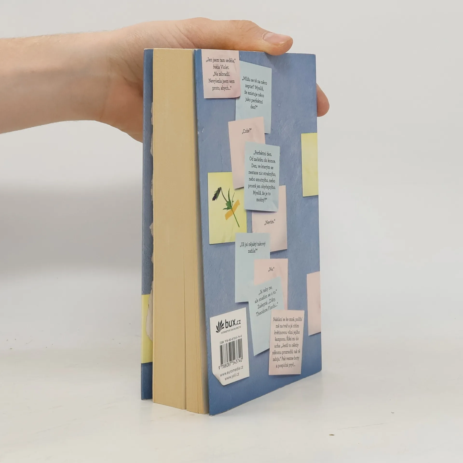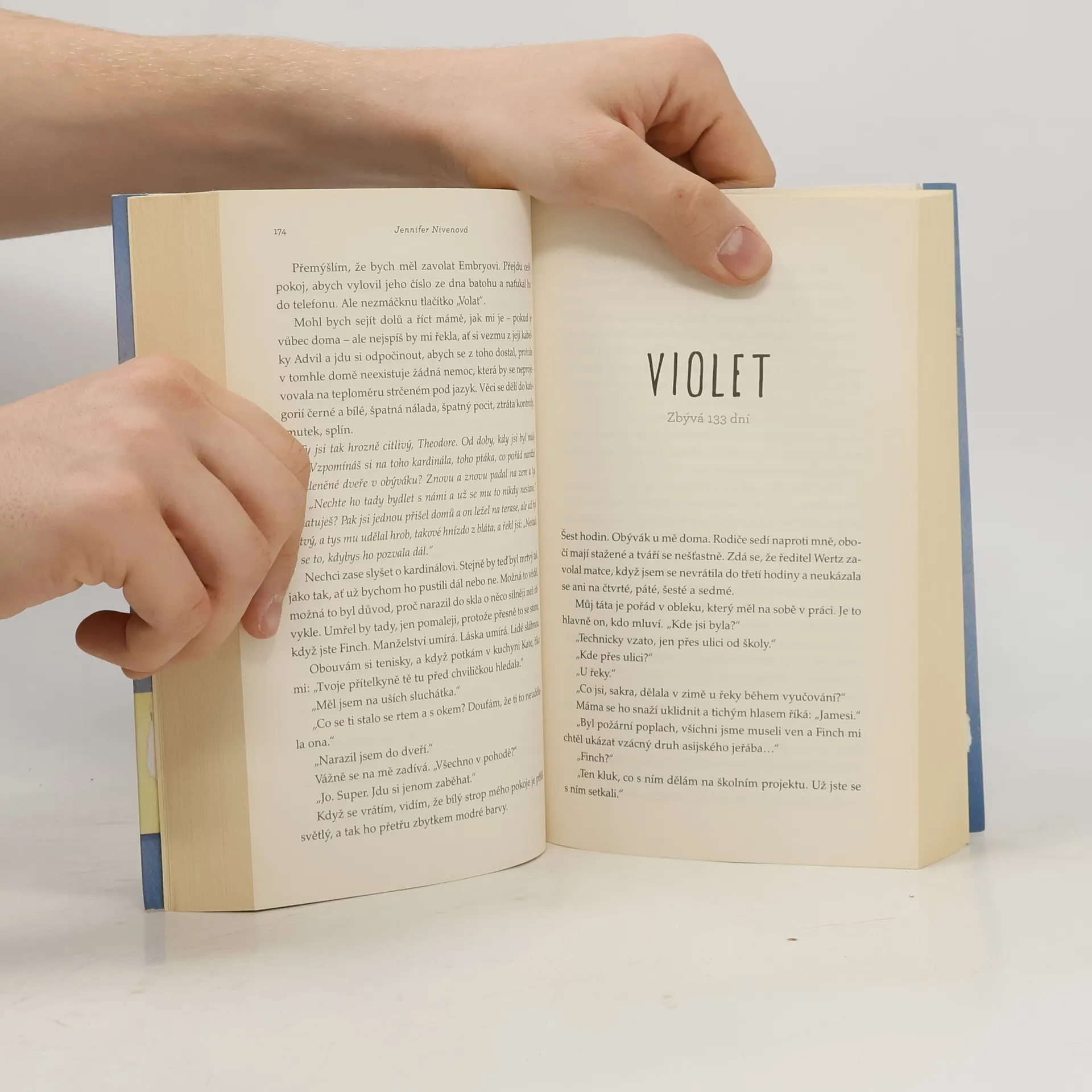 Strhující příběh o hledání a (ne)nalézání, o lidských předsudcích a první lásce. Theodora Finche fascinuje smrt. Violet Markeyová zase žije pro budoucnost – těší se na den, kdy dokončí střední školu a bude moct opustit rodné městečko, které jí připomíná nedávnou tragickou smrt sestry. Když se ti dva potkají na římse školní zvonice, není ale docela jasné, kdo koho vlastně bude zachraňovat. Finch je obyčejný kluk, až na to, že trpí bipolární poruchou. Violet je obyčejná holka, až na to, že Finchovi přijde úplně neobyčejná. Ty dva svede dohromady školní projekt, jehož cílem je objevovat „krásy Indiany“, a oba při tom učiní zajímavé objevy...