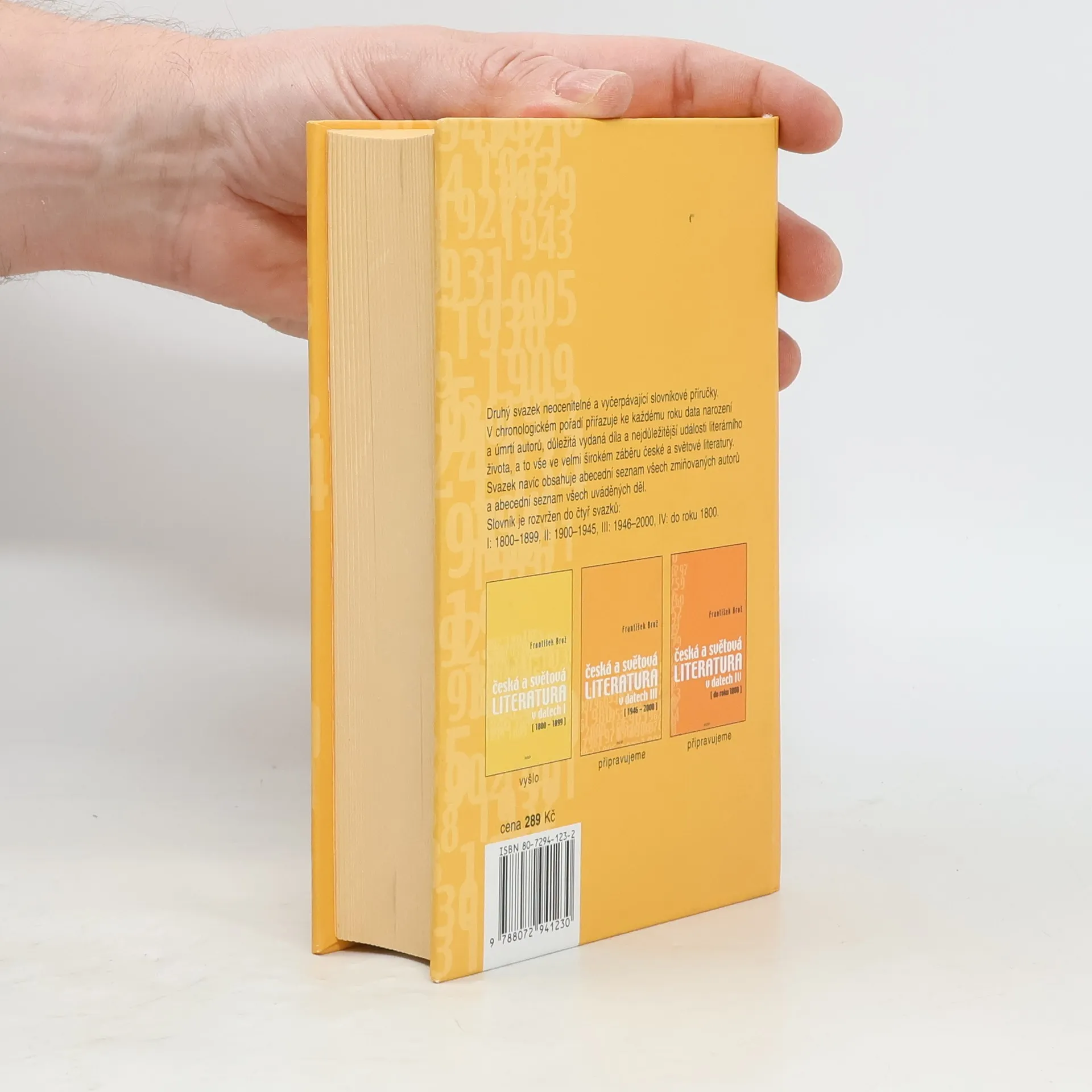 Druhý svazek neocenitelné a vyčerpávající slovníkové příručky. V chronologickém pořadí přiřazuje ke každému roku data narození a úmrtí autorů, důležitá vydaná díla a nejdůležitější události literárního života, a to vše ve velmi širokém záběru české a světové literatury. Slovník je rozvržen do čtyř svazků.